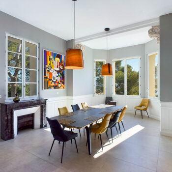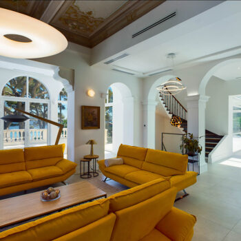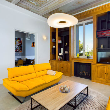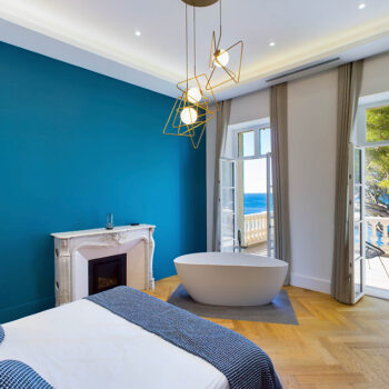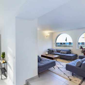 Salon : grand salon de plus de 60m² avec sa cheminée gaz et petit selon de 25 m2 en rez-de-jardin avec sa vue mer