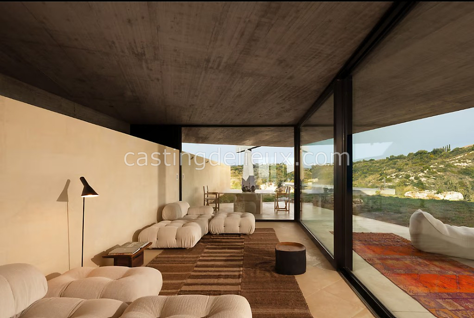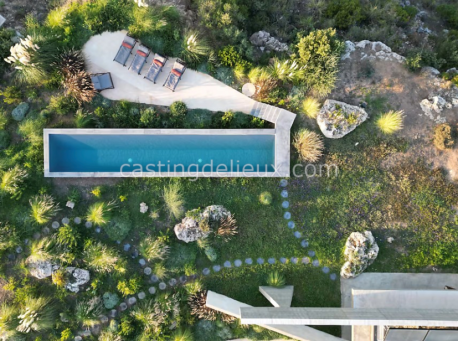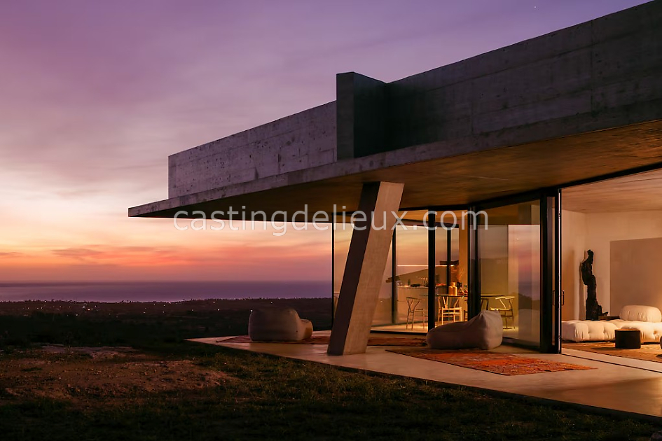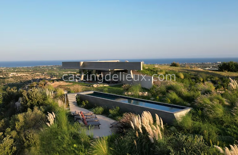 Villa contemporaine d’exception perchée sur les hauteurs, en Sicile. Son architecture minimaliste, ses volumes ouverts et sa piscine à débordement offrent un décor lumineux et graphique, idéal pour des shootings photo et tournages premium. Les espaces intérieurs et extérieurs dialoguent avec le paysage méditerranéen, entre lignes épurées, matières naturelles et vues panoramiques sur la vallée.