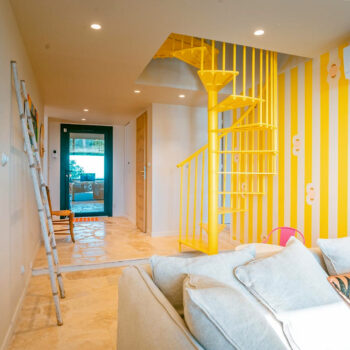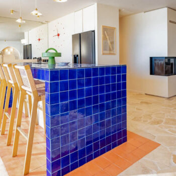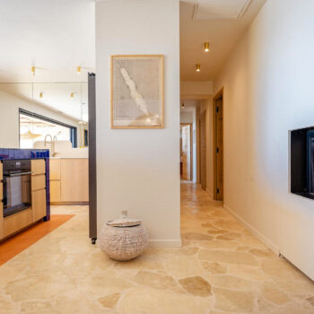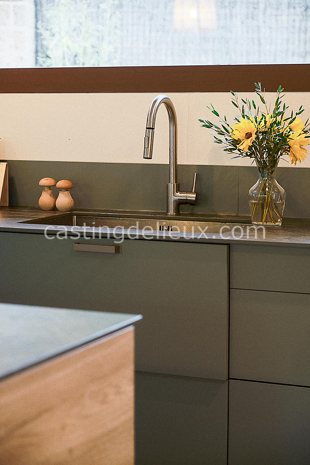 murs peints / tapisseries, cuisine ouverte, baie vitrée, pierre
