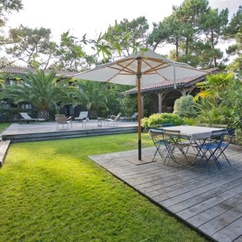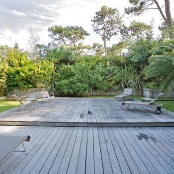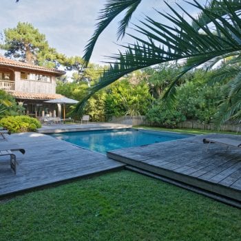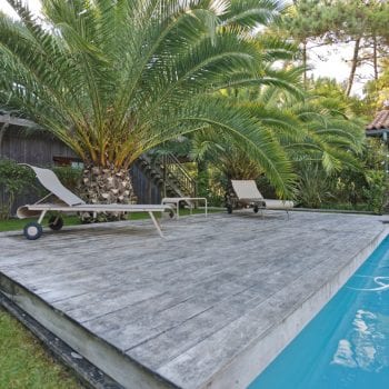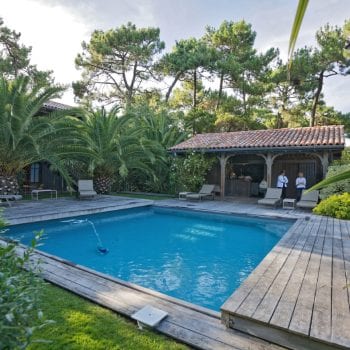 piscine, cuisine extérieure / pool house, terrasse bois