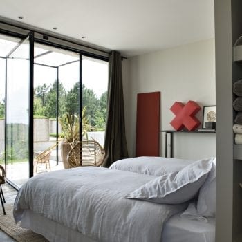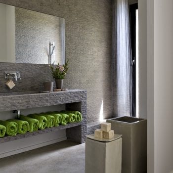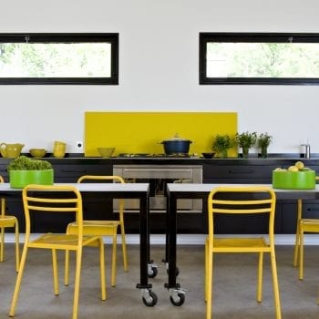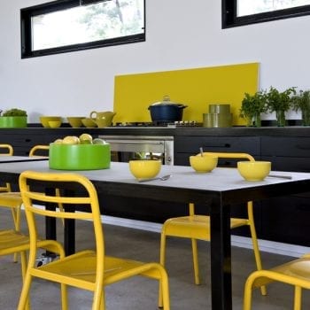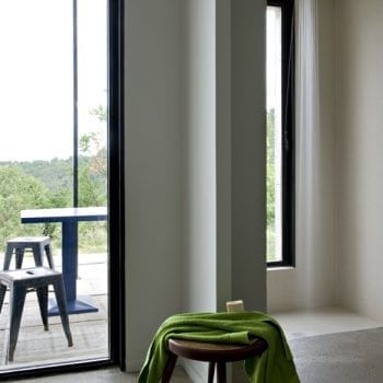 murs peints / tapisseries, cuisine ouverte, baie vitrée, sol béton