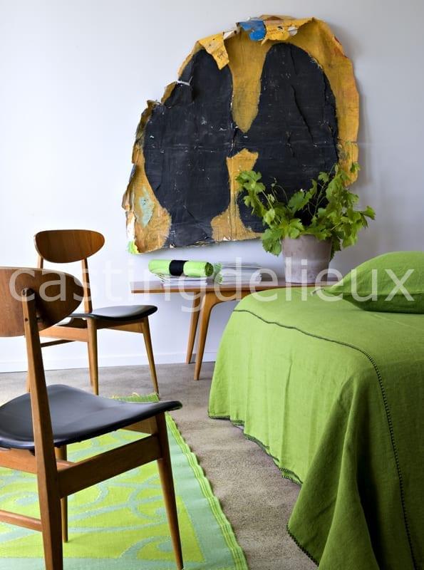 murs peints / tapisseries, cuisine ouverte, baie vitrée, sol béton