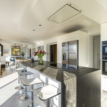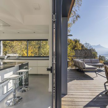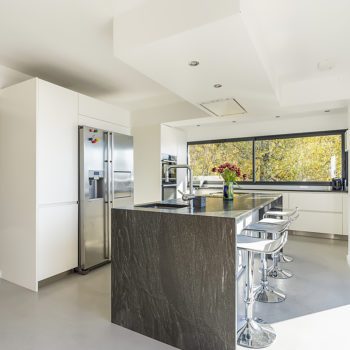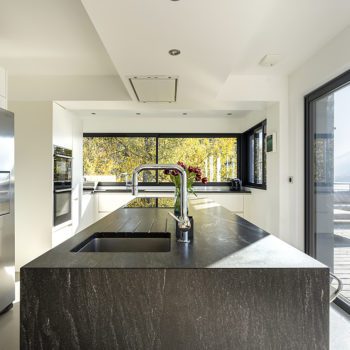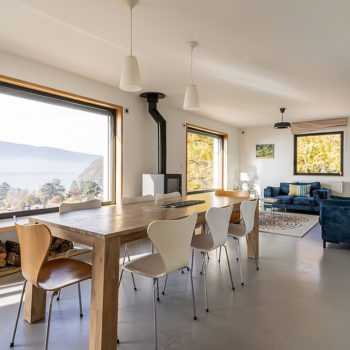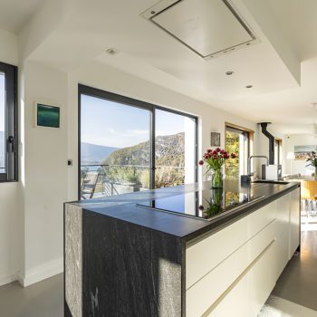 parquet, carrelage/tomettes, cheminée, cuisine ouverte, baie vitrée