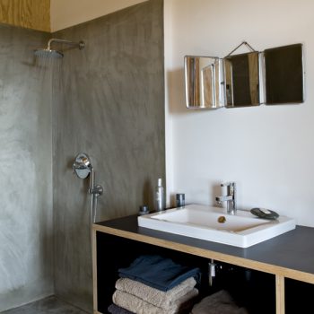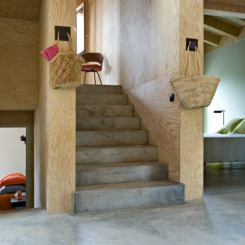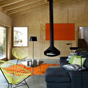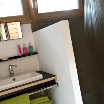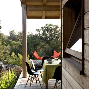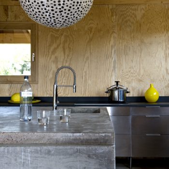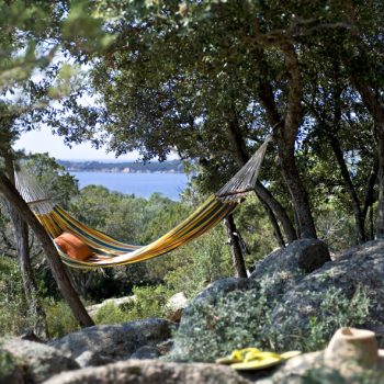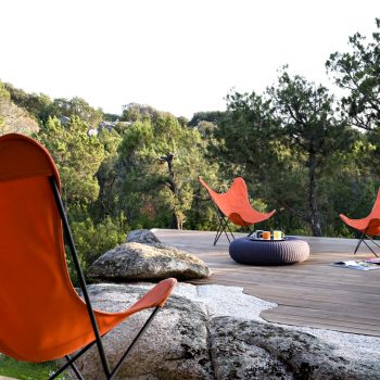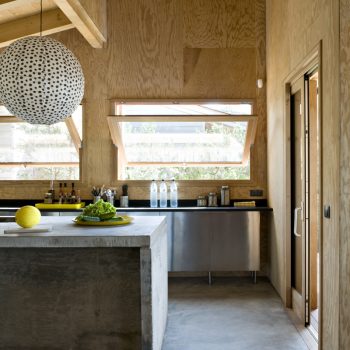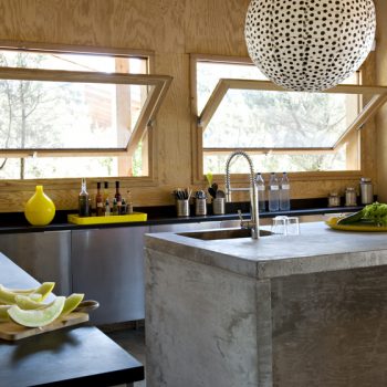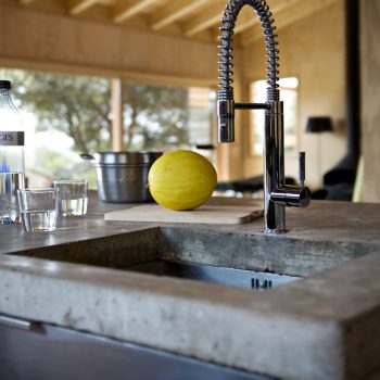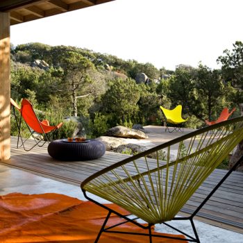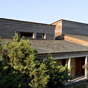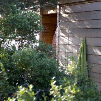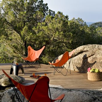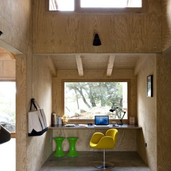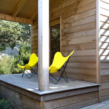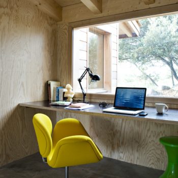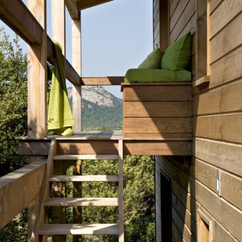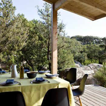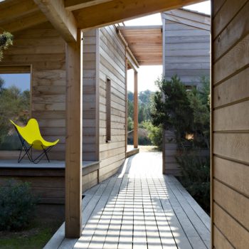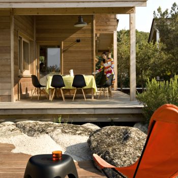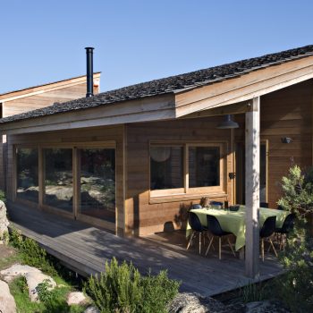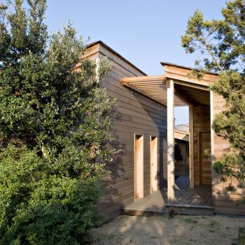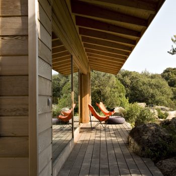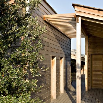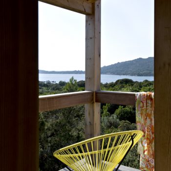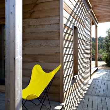 Maison contemporaine en bois située dans le sud de la Corse, vue mer.