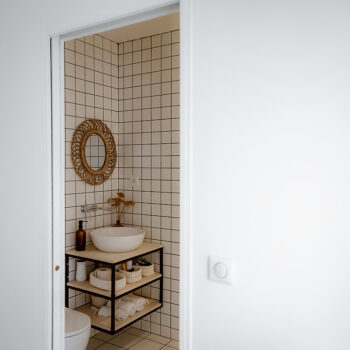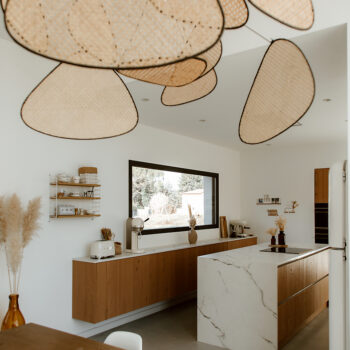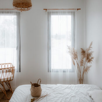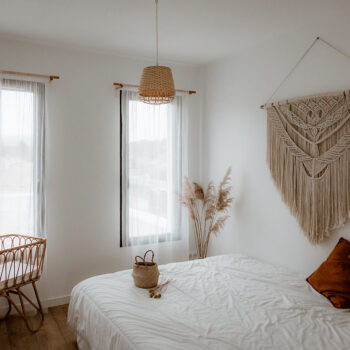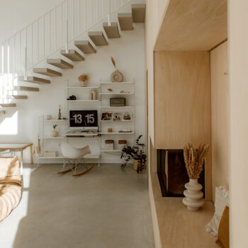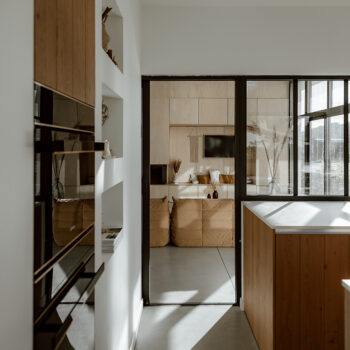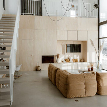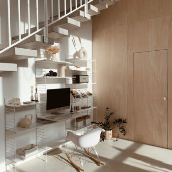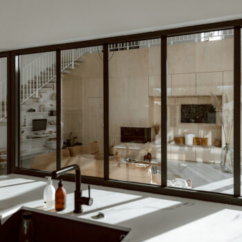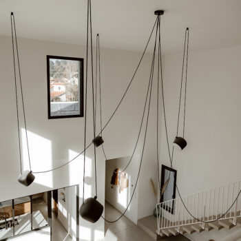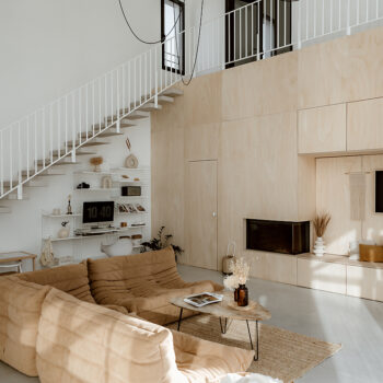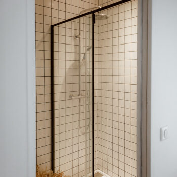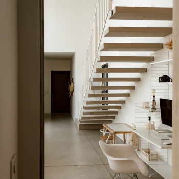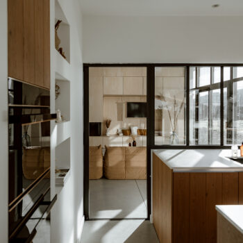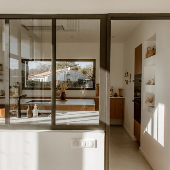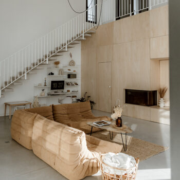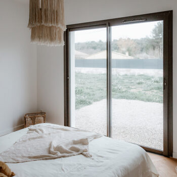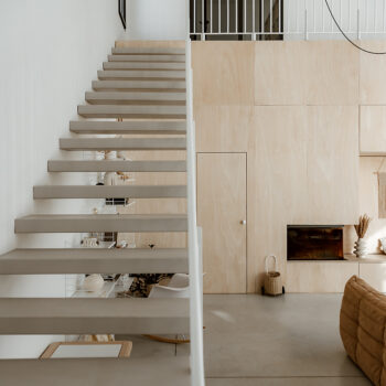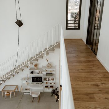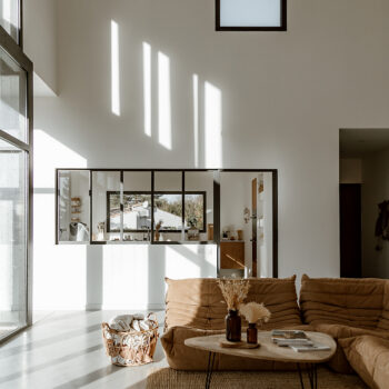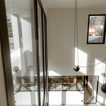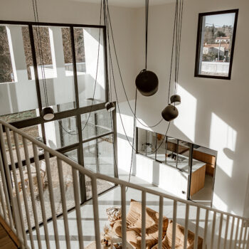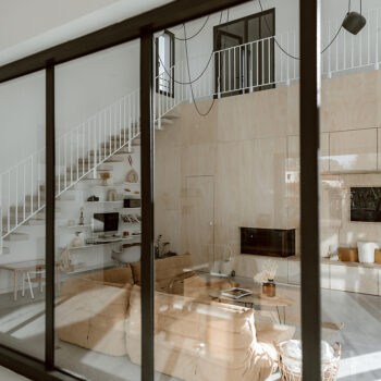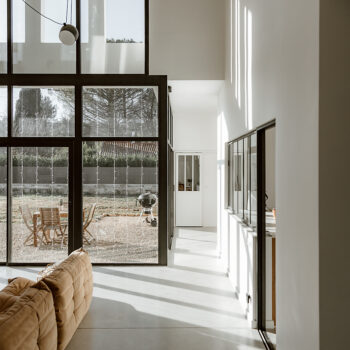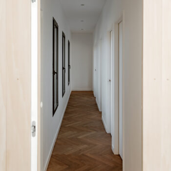 murs peints / tapisseries, parquet, hauteur sous plafond, baie vitrée, sol béton