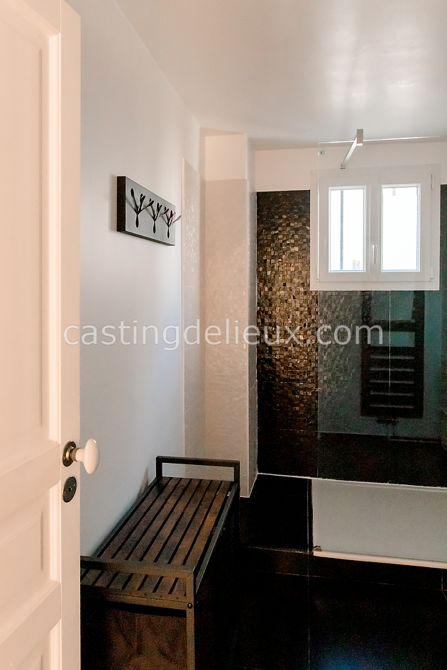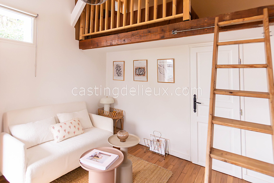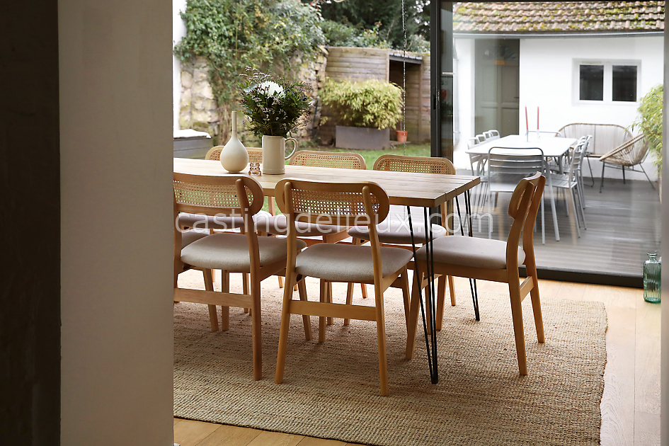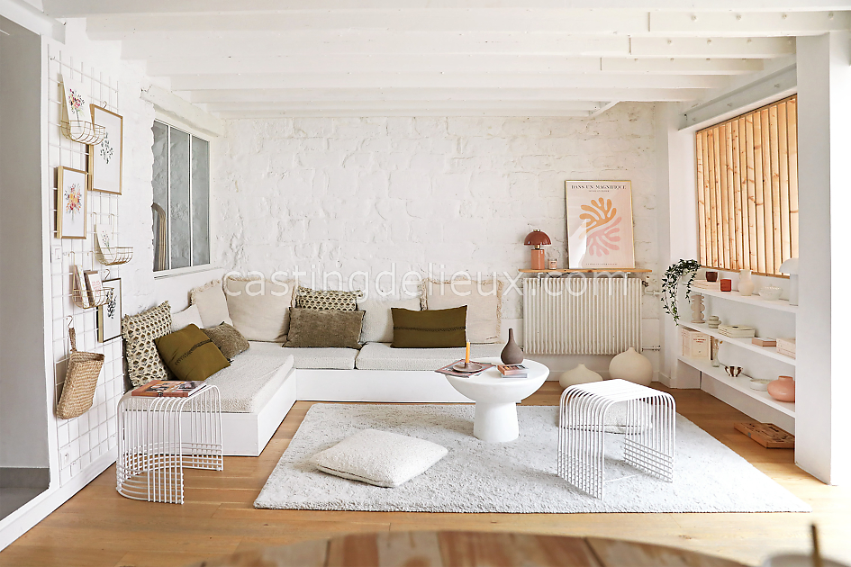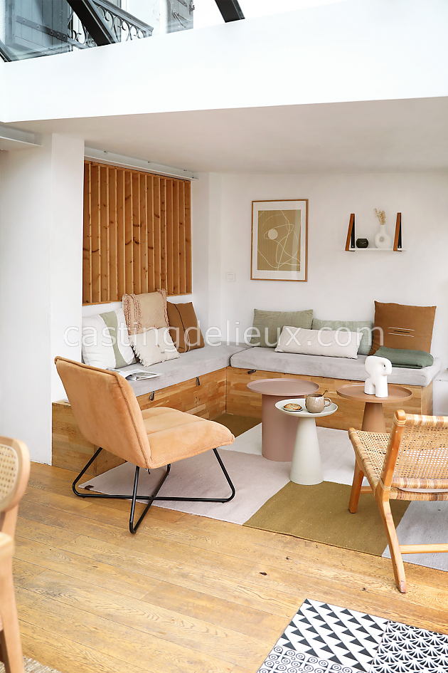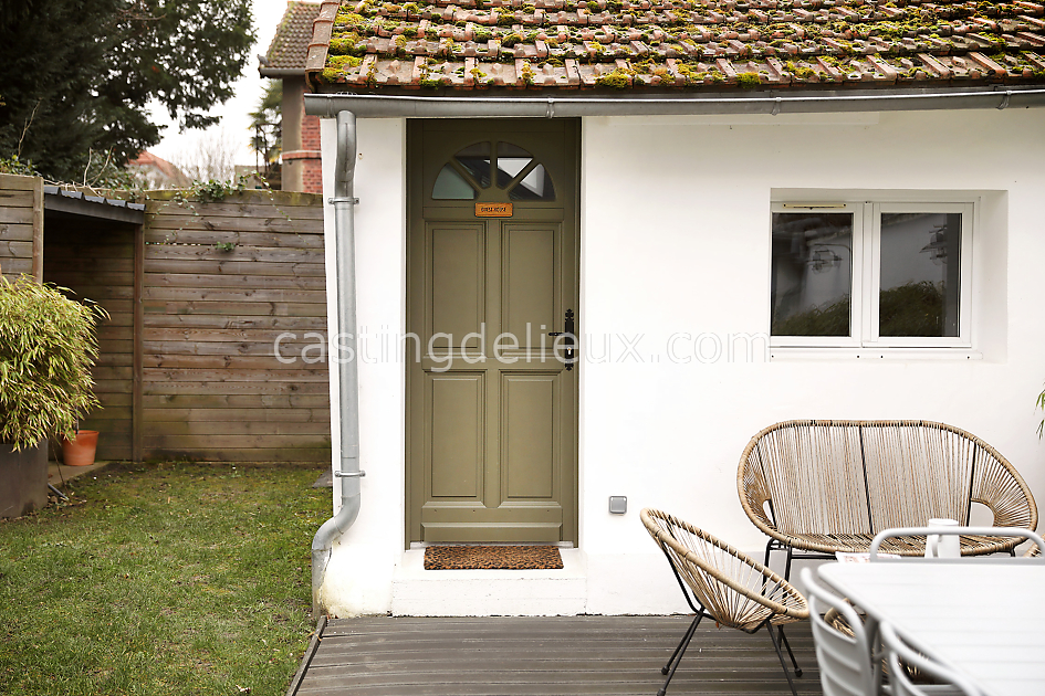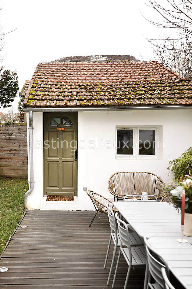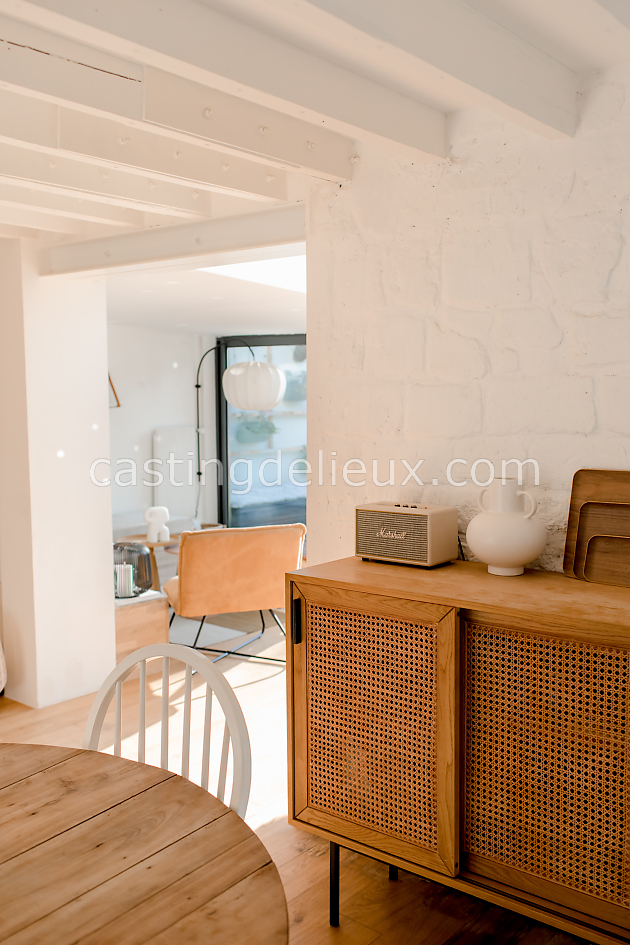 Maison contemporaine en Île-de-France (Nanterre), offrant espaces lumineux, grandes baies vitrées, cuisine ouverte et terrasse. Intérieurs avec verrière, parquet et décor contemporain, adapté pour shootings photo et tournages.