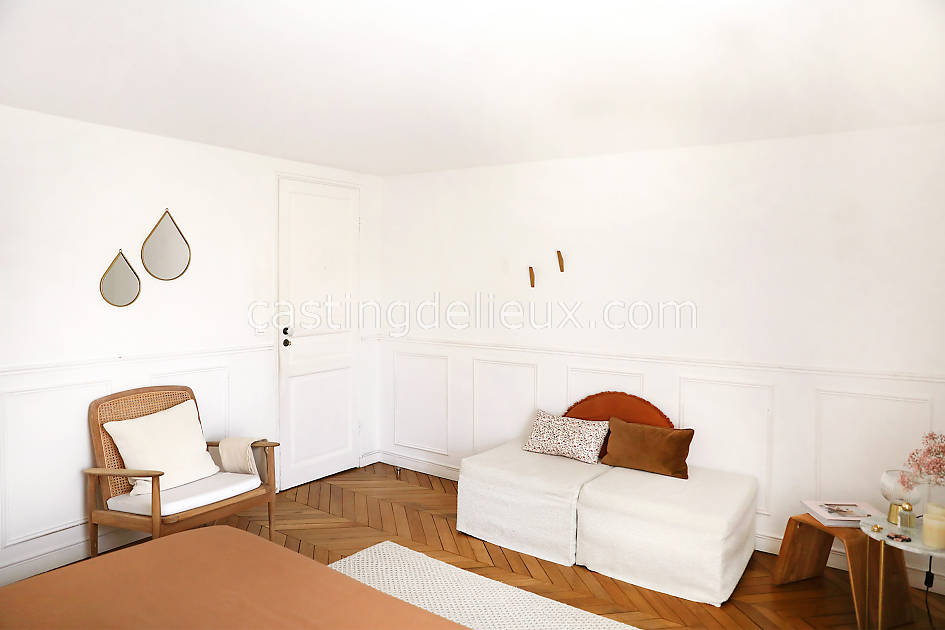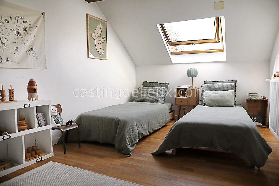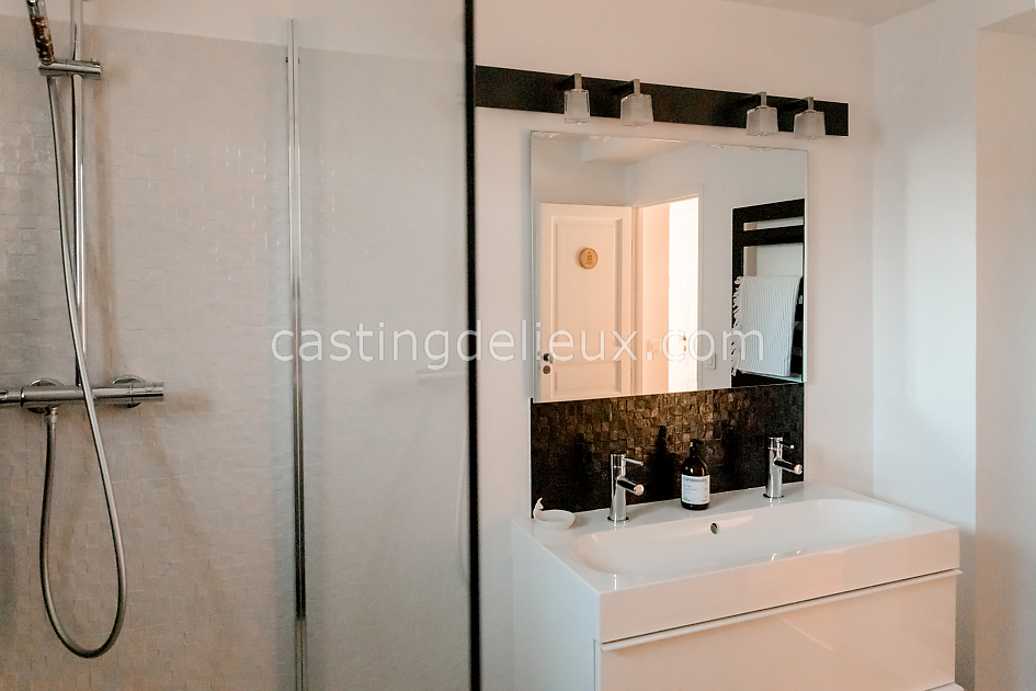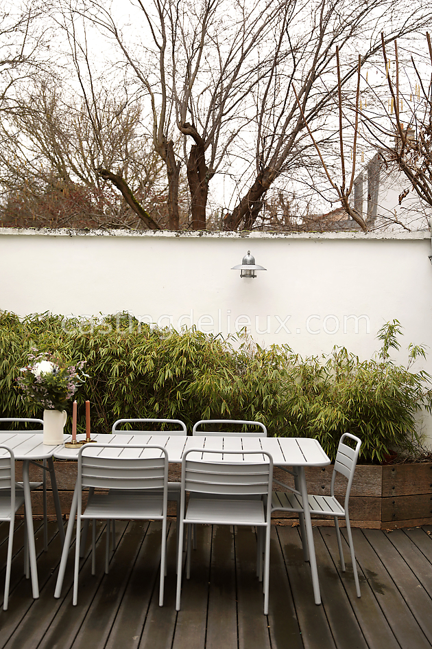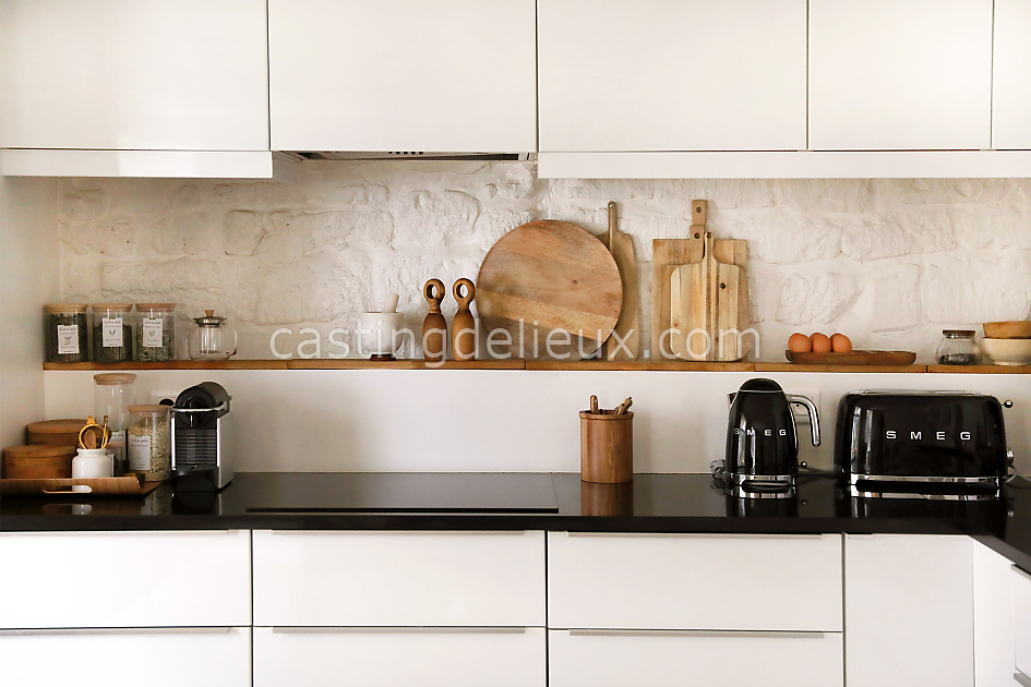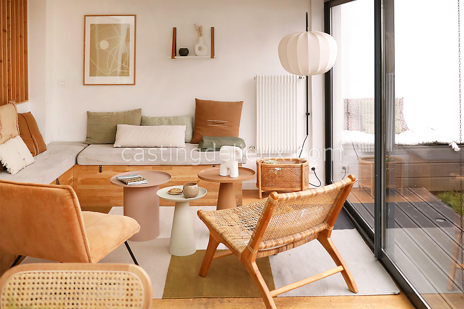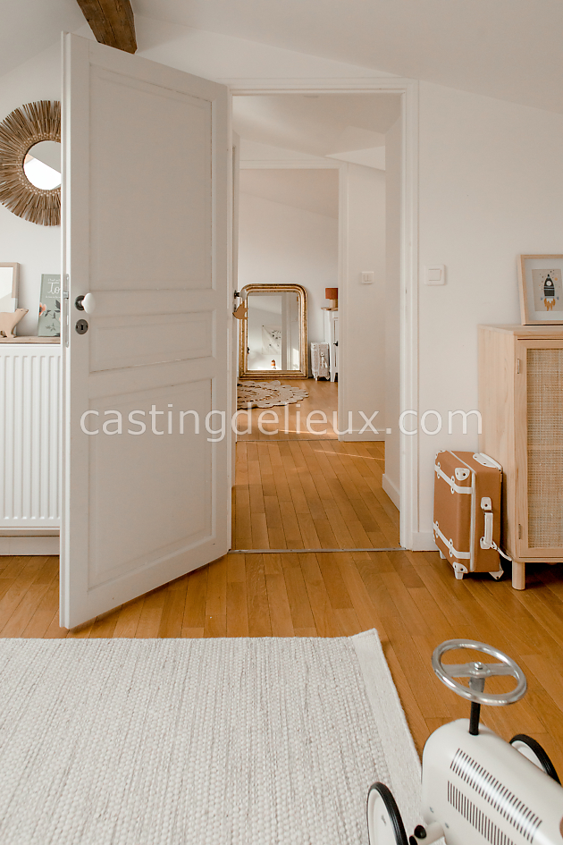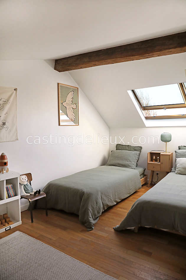 Maison contemporaine en Île-de-France (Nanterre), offrant espaces lumineux, grandes baies vitrées, cuisine ouverte et terrasse. Intérieurs avec verrière, parquet et décor contemporain, adapté pour shootings photo et tournages.