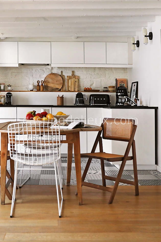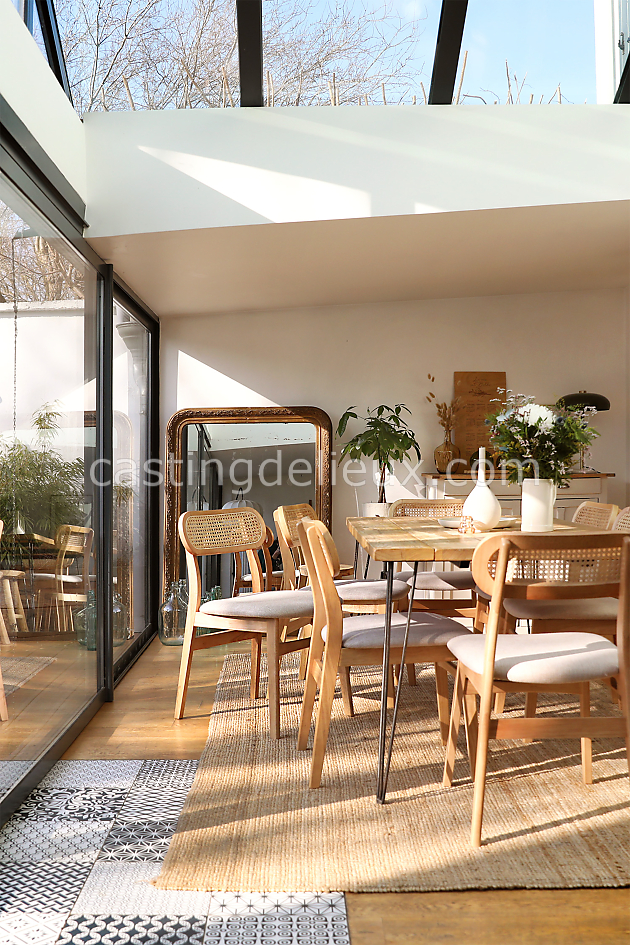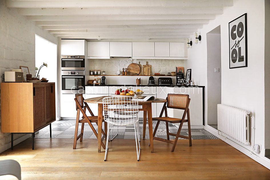 | Ambiance intérieure | Déco tendances actuelles, Verrière / baie vitrée, Sol bois / parquet, Murs blancs / Enduits naturels, Moulures, Déco contemporaine, Ambiance design, Cuisine ouverte |