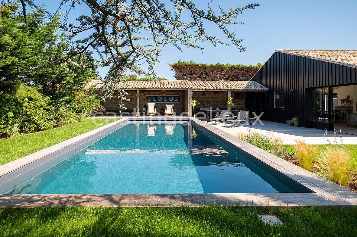cuisine extérieure / pool house, terrasse bois, prairie, piscine
