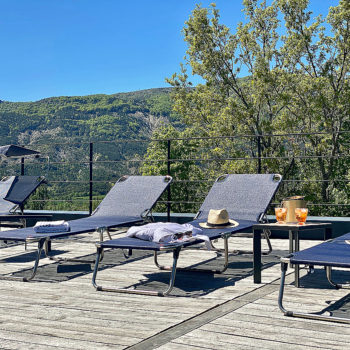 terrasse, terrasse bois, prairie, piscine
