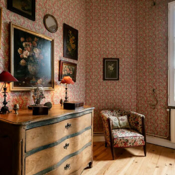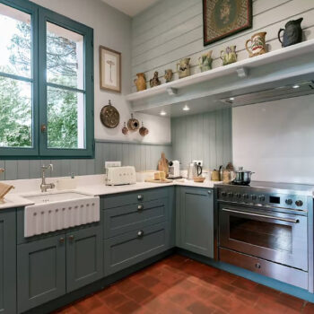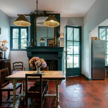 murs peints / tapisseries, parquet, carrelage/tomettes, cheminée, cuisine ouverte