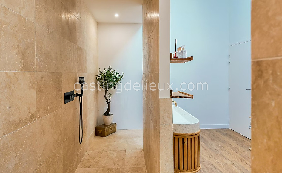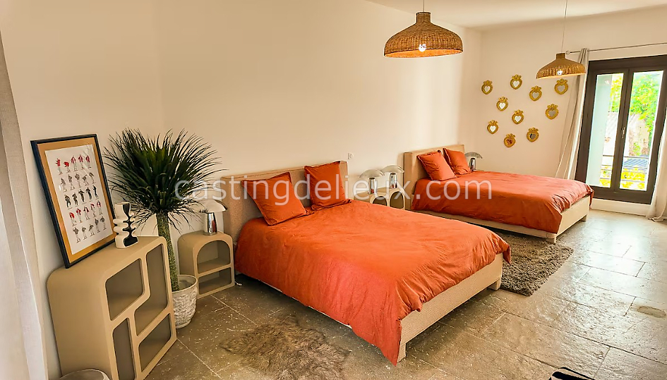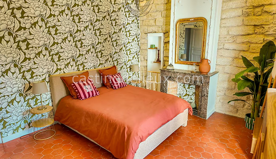 Chambre 4:R+1, suite côté parc;1 lit double 180×200 + 1 convertible 140×190; Salle de bain privative avec baignoire/douche/WC; Grand dressing privatif.
