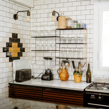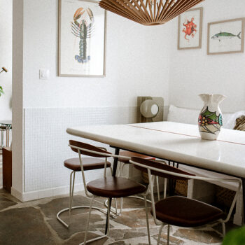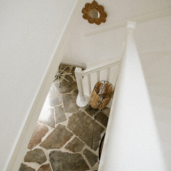 carrelage/tomettes, cheminée, cuisine ouverte, pierre