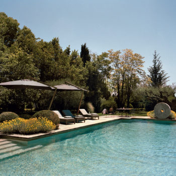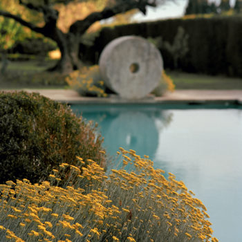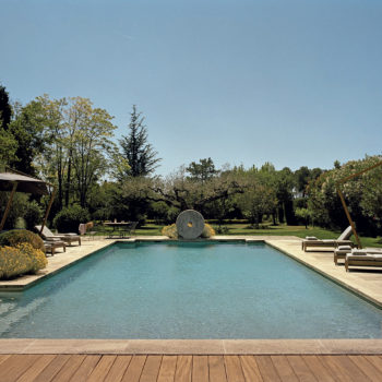 Mas provençal du 18ème siècle qui se dresse au milieu d’immenses jardins à la française.
