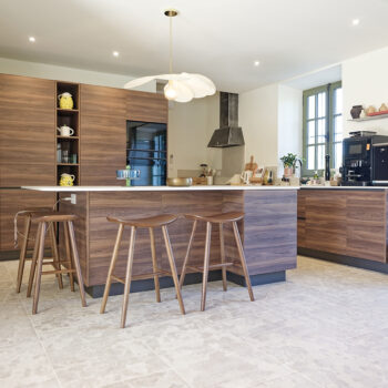murs peints / tapisseries, parquet, cheminée, cuisine ouverte, pierre