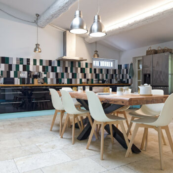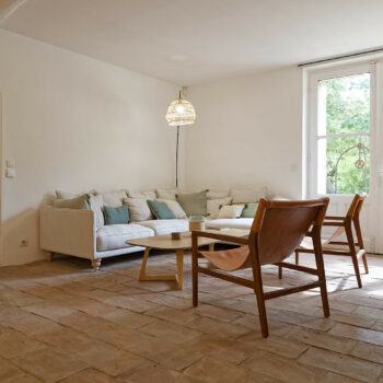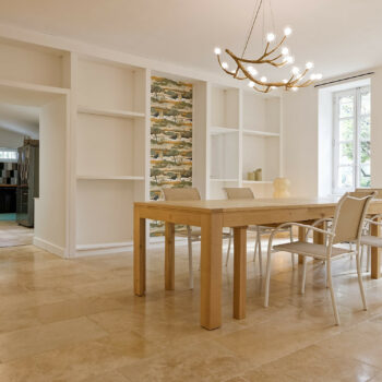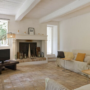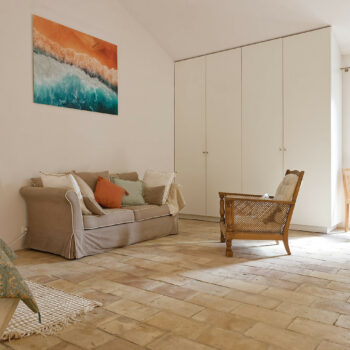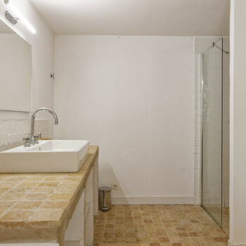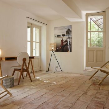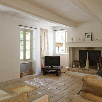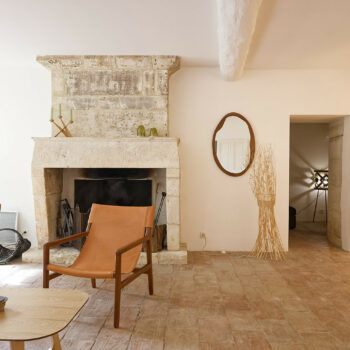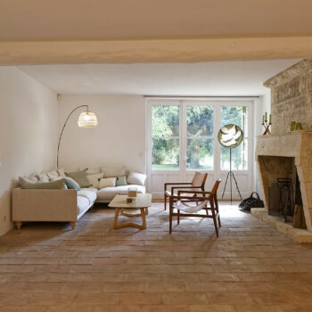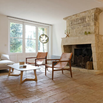 carrelage/tomettes, cheminée, pierre