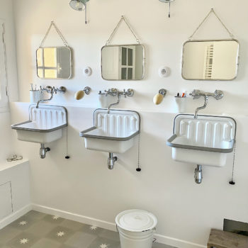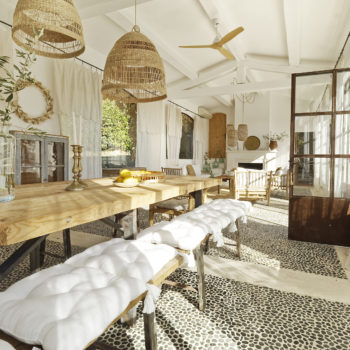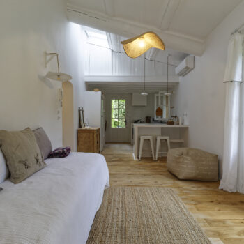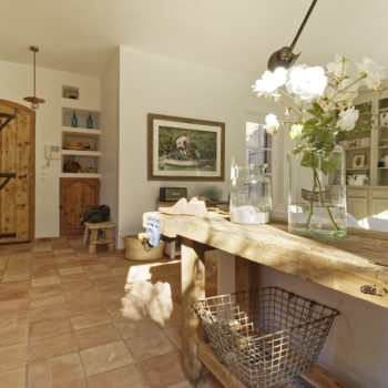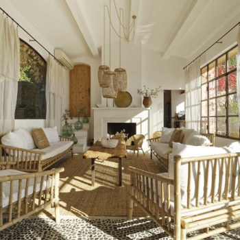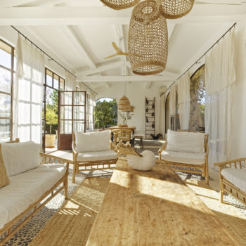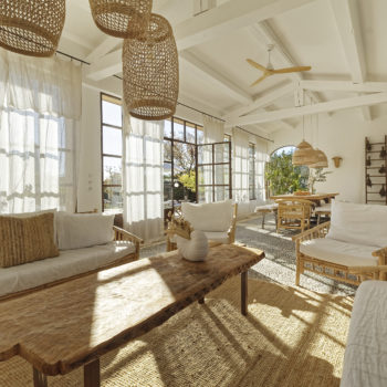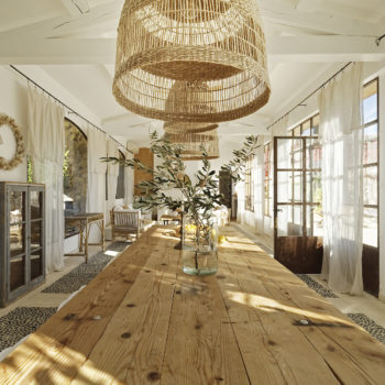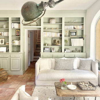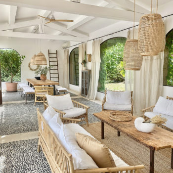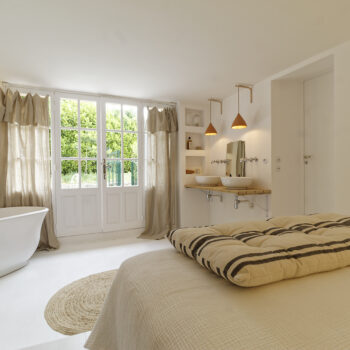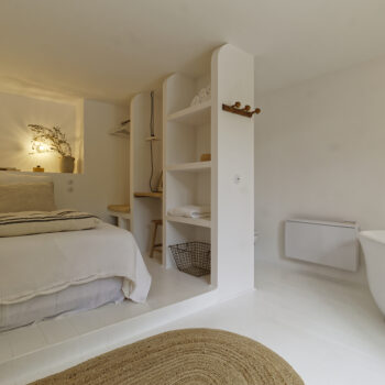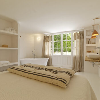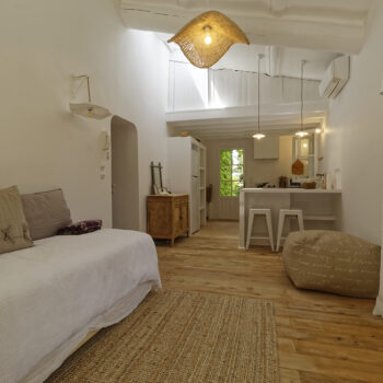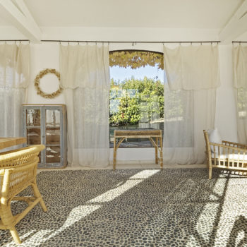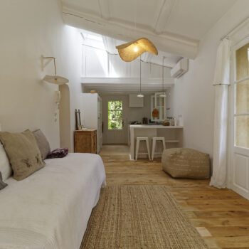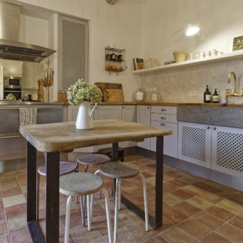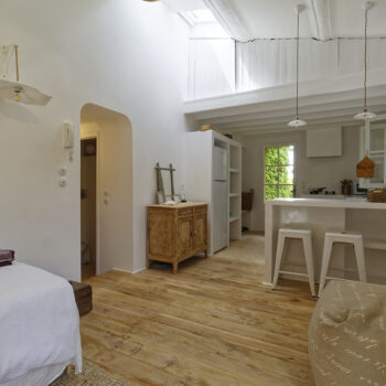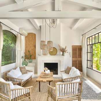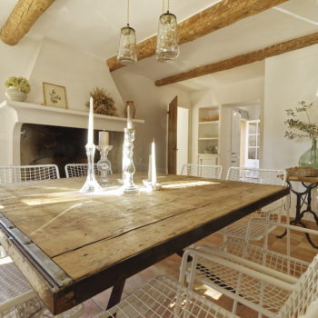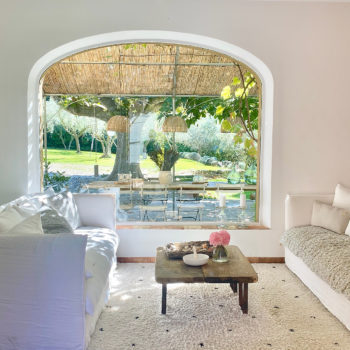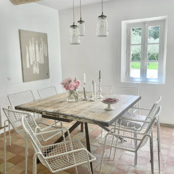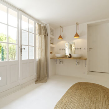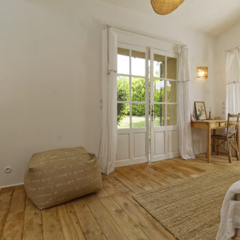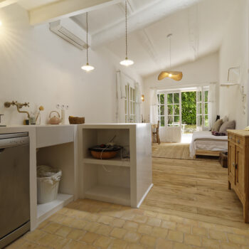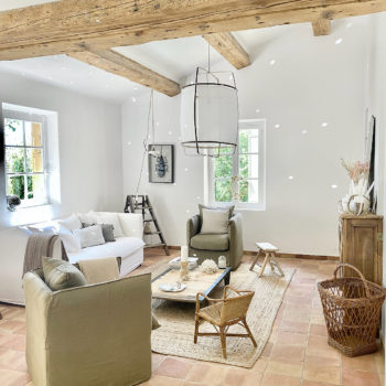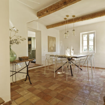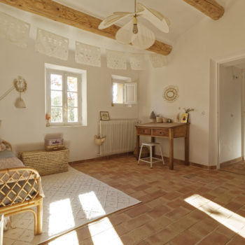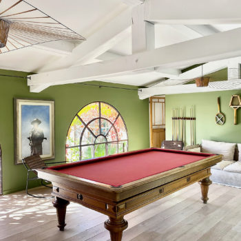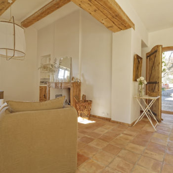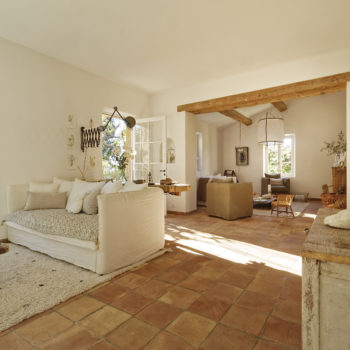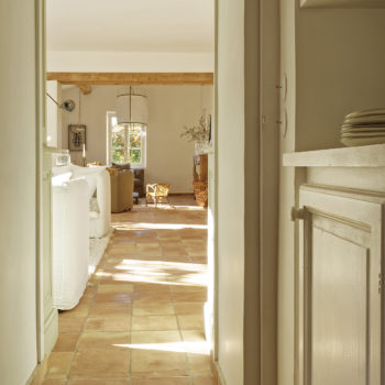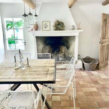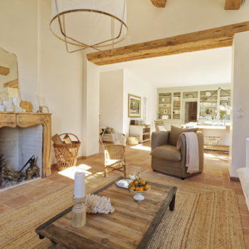 sol béton, baie vitrée, verrière / patio, cheminée, carrelage/tomettes, parquet, murs peints / tapisseries