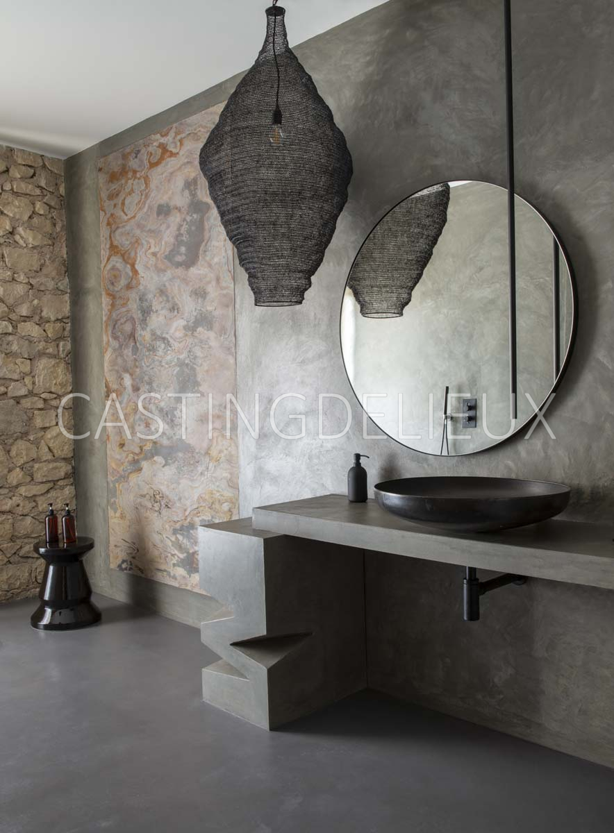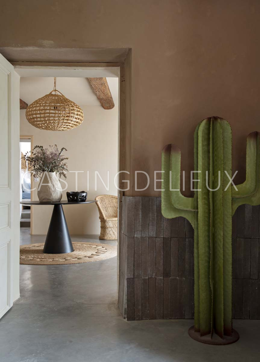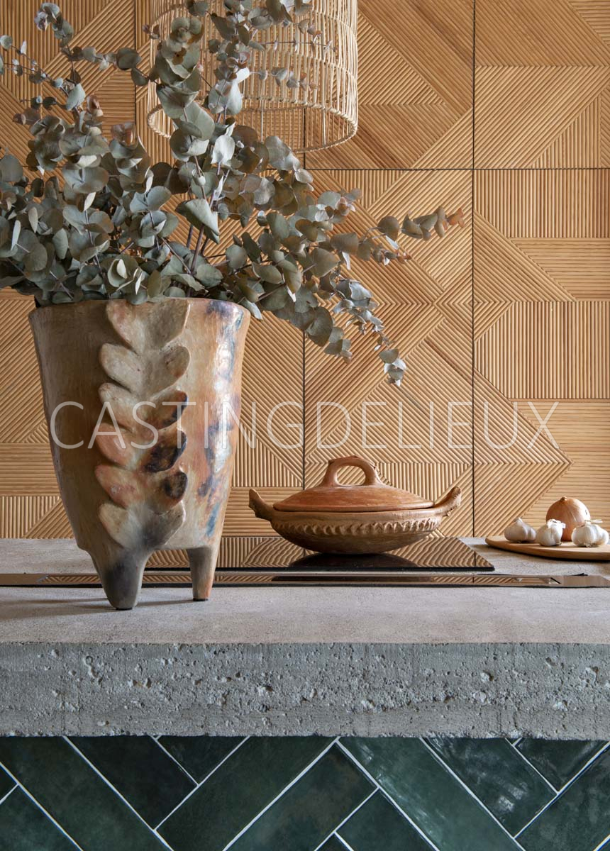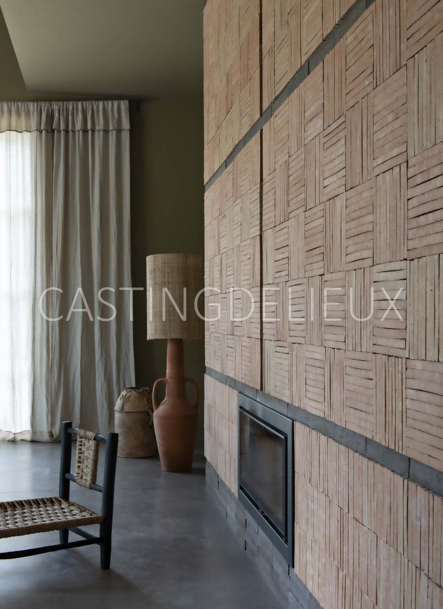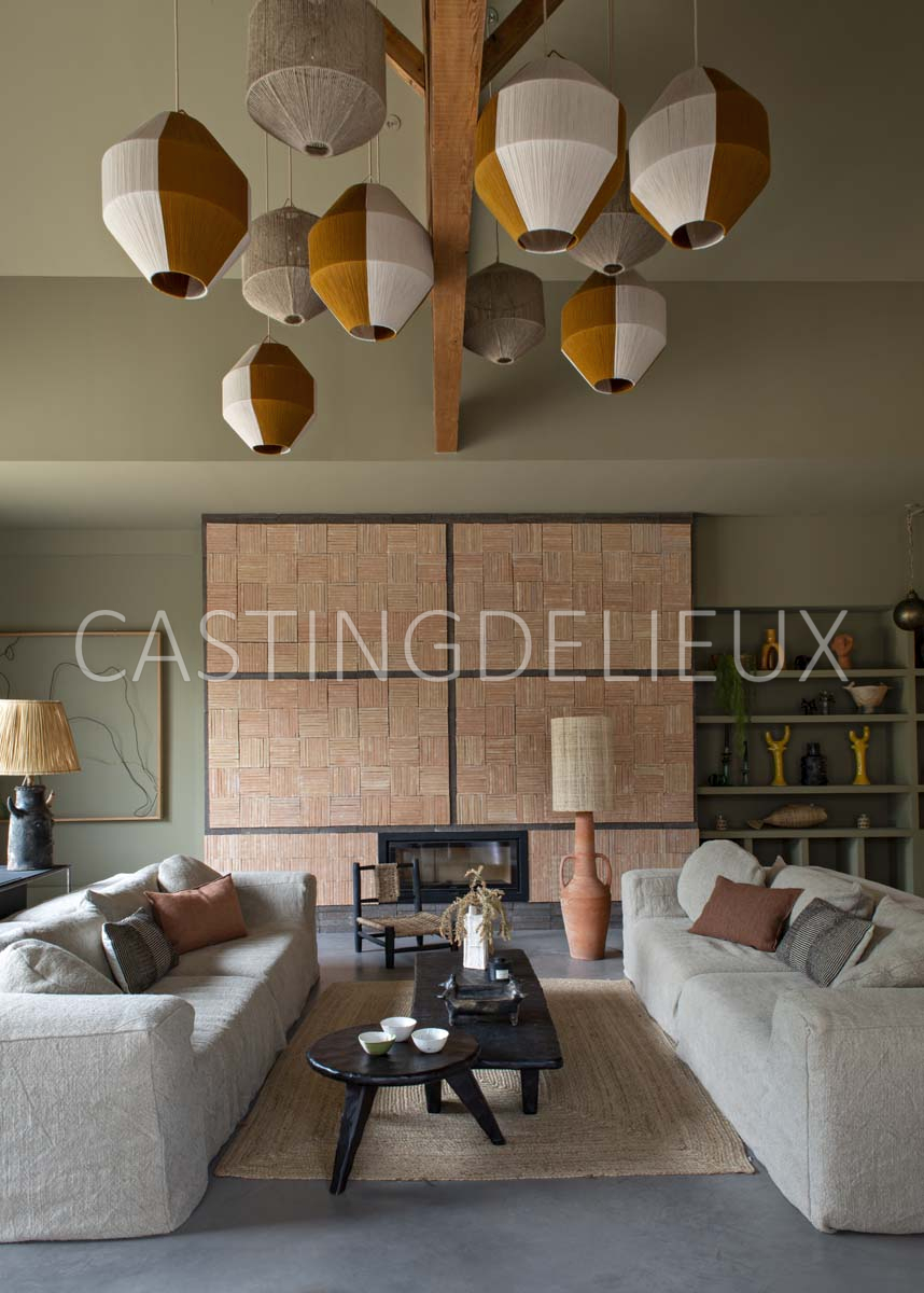 Éléments architecturaux ou décoratifs remarquables : Matériaux bruts, comme du béton ciré, du bois, de la pierre, de la brique, du lin, de la paille…
