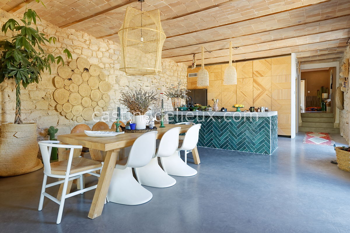 Mas rénové de 350 m² situé près d’Uzès, au cœur d’un environnement naturel préservé. Entre pierre, bois et matières brutes, ce lieu mêle charme provençal et esprit bohème chic. Ses grands volumes lumineux, sa piscine carrelée, son pool house et son vaste jardin paysager offrent un cadre idéal pour shootings photo, tournages ou séjours créatifs dans le Sud.