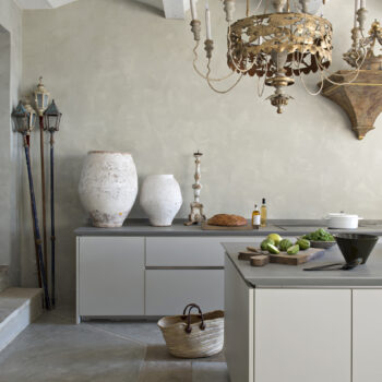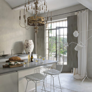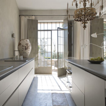cuisine ouverte, sol béton