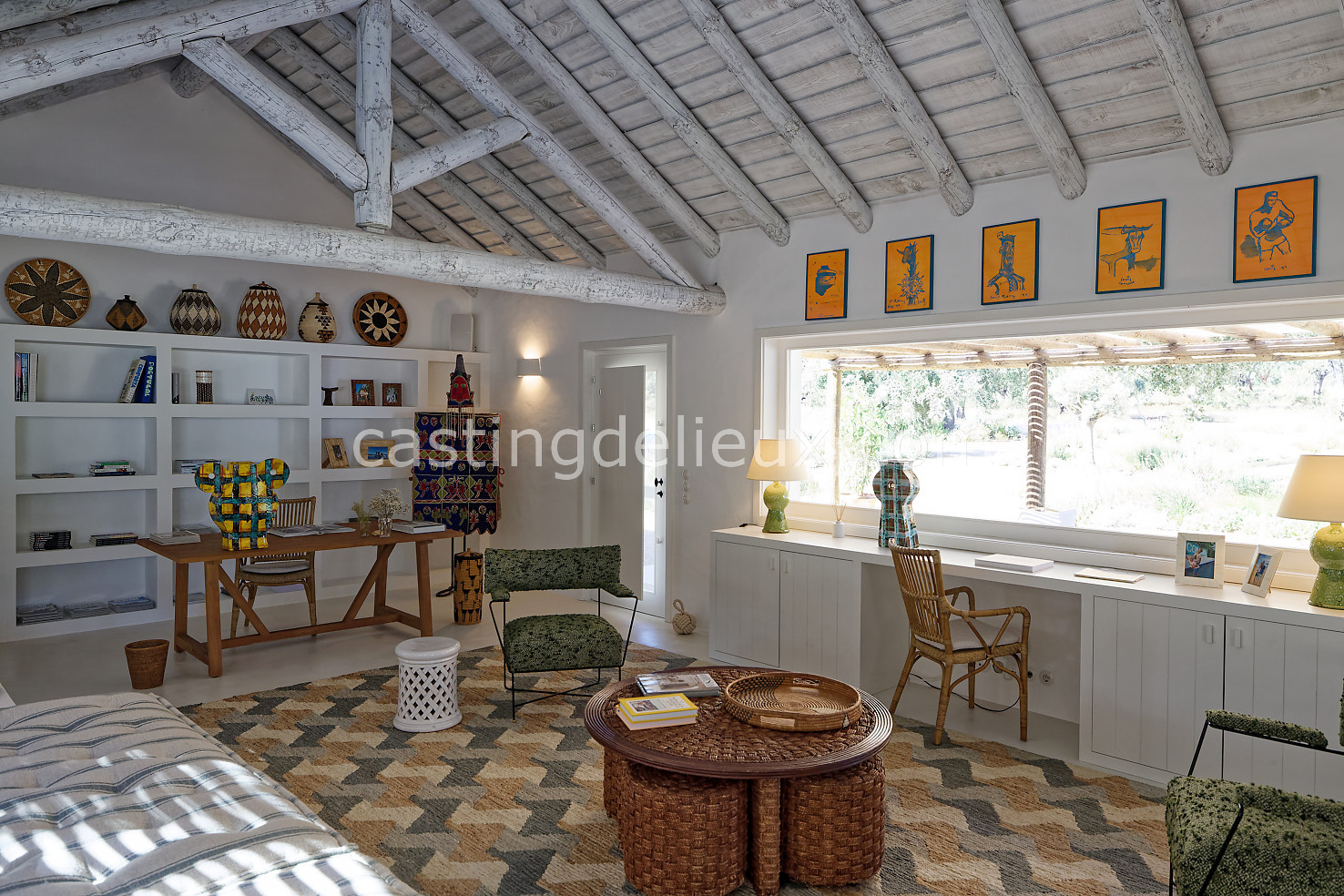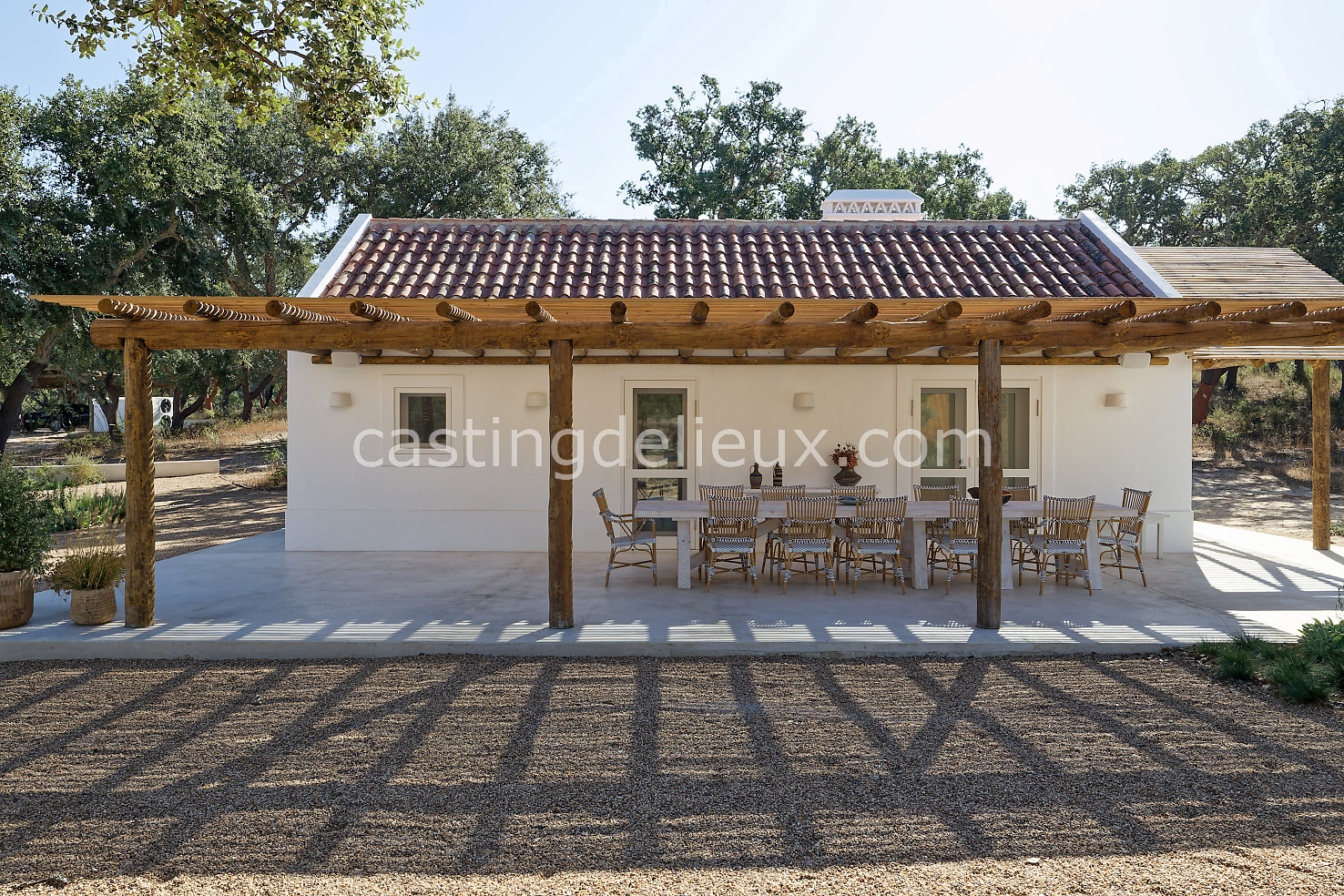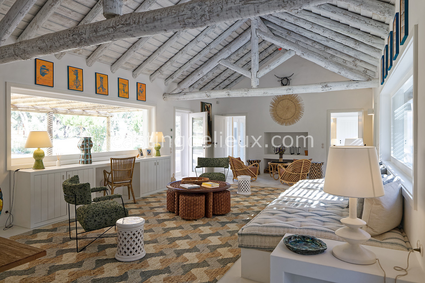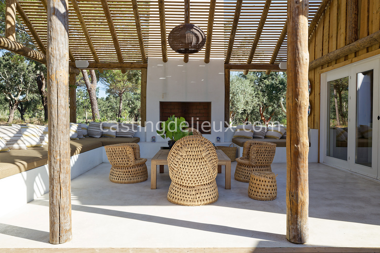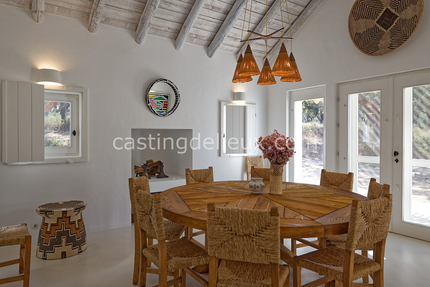 Cette maison de vacances à Comporta offre un décor lumineux et naturel, parfait pour shootings photo, tournages ou projets visuels. Les espaces intérieurs, aux murs blancs et finitions épurées, sont baignés de lumière et structurés autour d’une cheminée chaleureuse, créant une ambiance simple et élégante. L’extérieur séduit par sa terrasse en bois, un grand jardin verdoyant et une piscine traditionnelle entourée de pins, de chênes liège et de nature sauvage, typique de Comporta. La forêt attenante apporte une toile de fond naturelle et versatile pour toutes vos prises de vue. L’ensemble dégage une atmosphère sereine, ouverte sur l’extérieur, qui met en valeur la lumière naturelle et les éléments paysagers. Accessible avec stationnement, ce lieu allie confort, lumière et esthétisme pour vos projets créatifs.