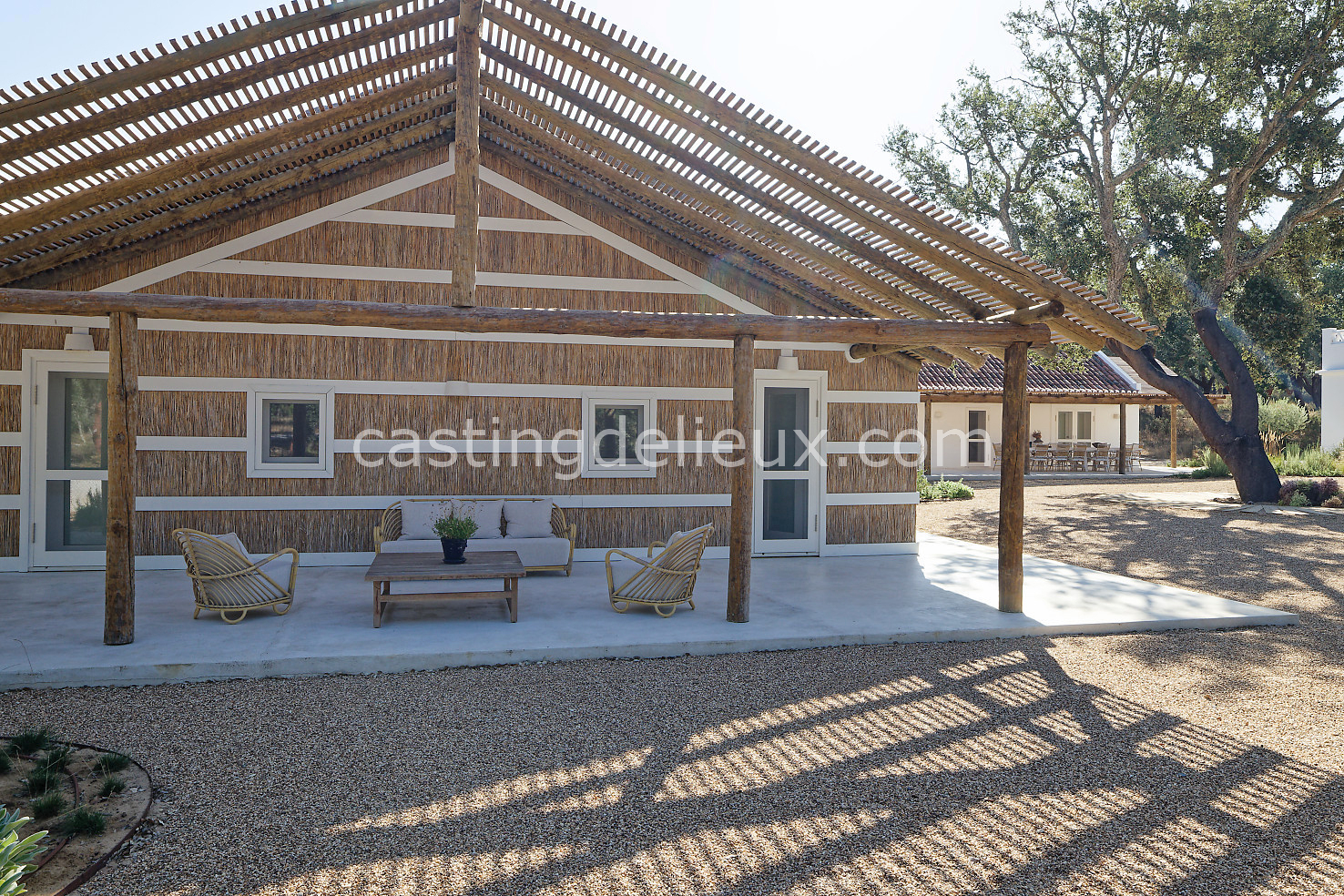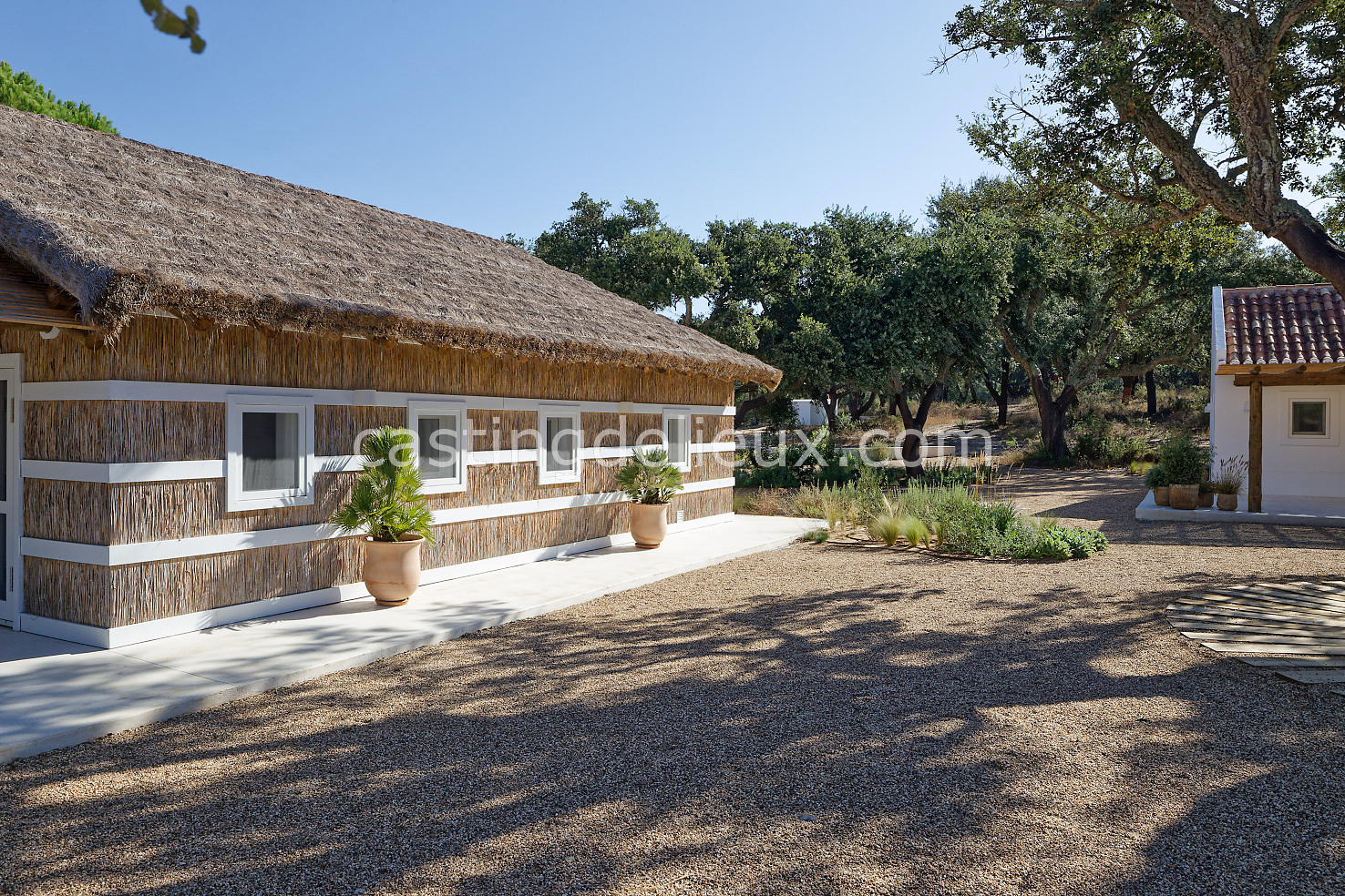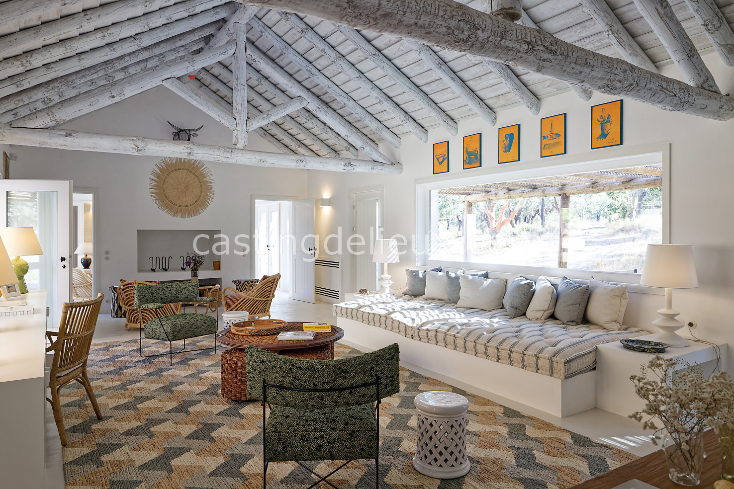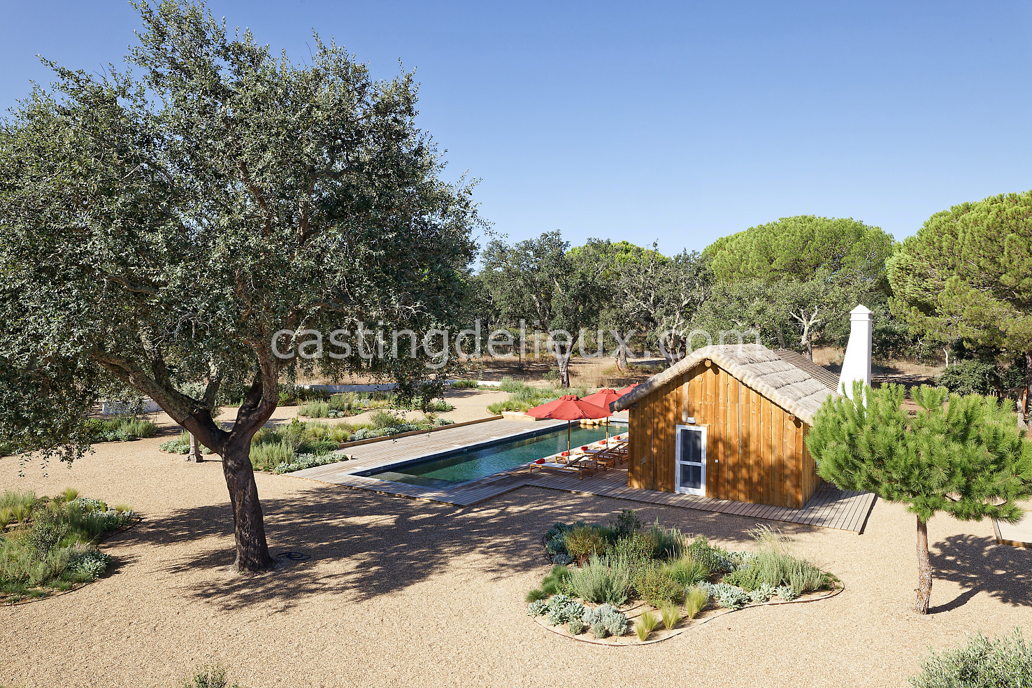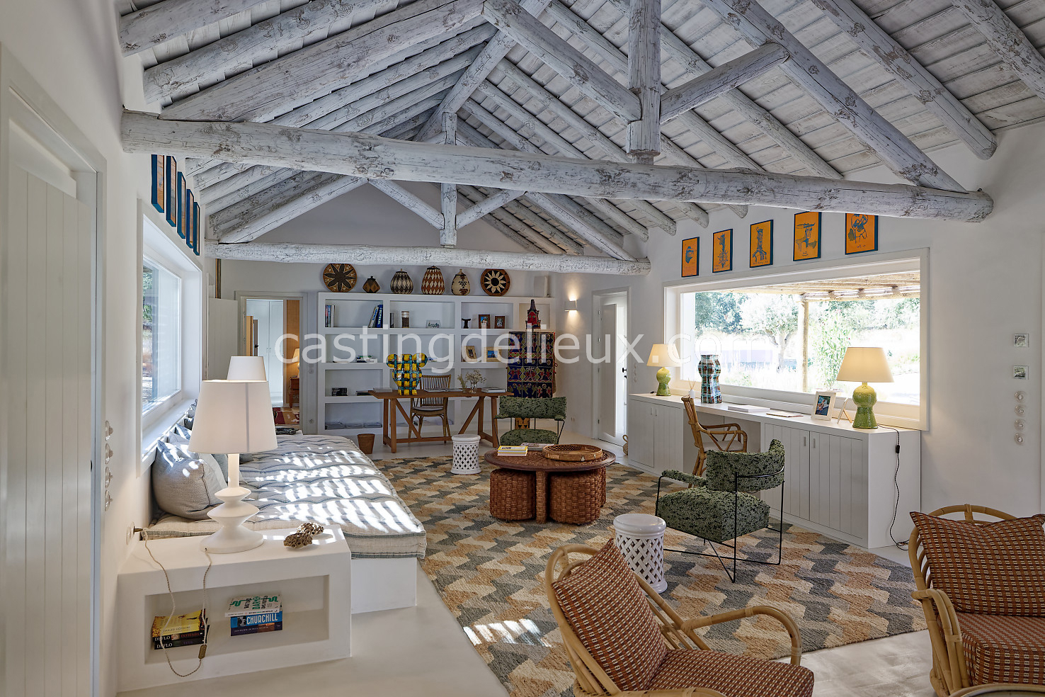 Cette maison de vacances à Comporta offre un décor lumineux et naturel, parfait pour shootings photo, tournages ou projets visuels. Les espaces intérieurs, aux murs blancs et finitions épurées, sont baignés de lumière et structurés autour d’une cheminée chaleureuse, créant une ambiance simple et élégante. L’extérieur séduit par sa terrasse en bois, un grand jardin verdoyant et une piscine traditionnelle entourée de pins, de chênes liège et de nature sauvage, typique de Comporta. La forêt attenante apporte une toile de fond naturelle et versatile pour toutes vos prises de vue. L’ensemble dégage une atmosphère sereine, ouverte sur l’extérieur, qui met en valeur la lumière naturelle et les éléments paysagers. Accessible avec stationnement, ce lieu allie confort, lumière et esthétisme pour vos projets créatifs.