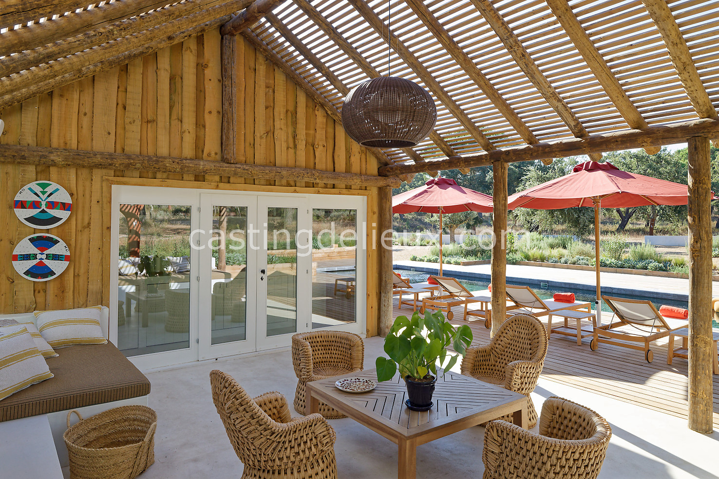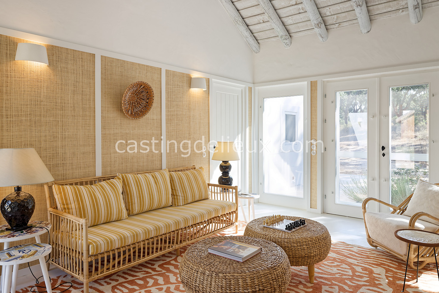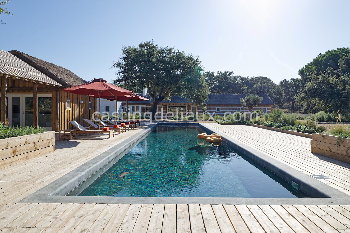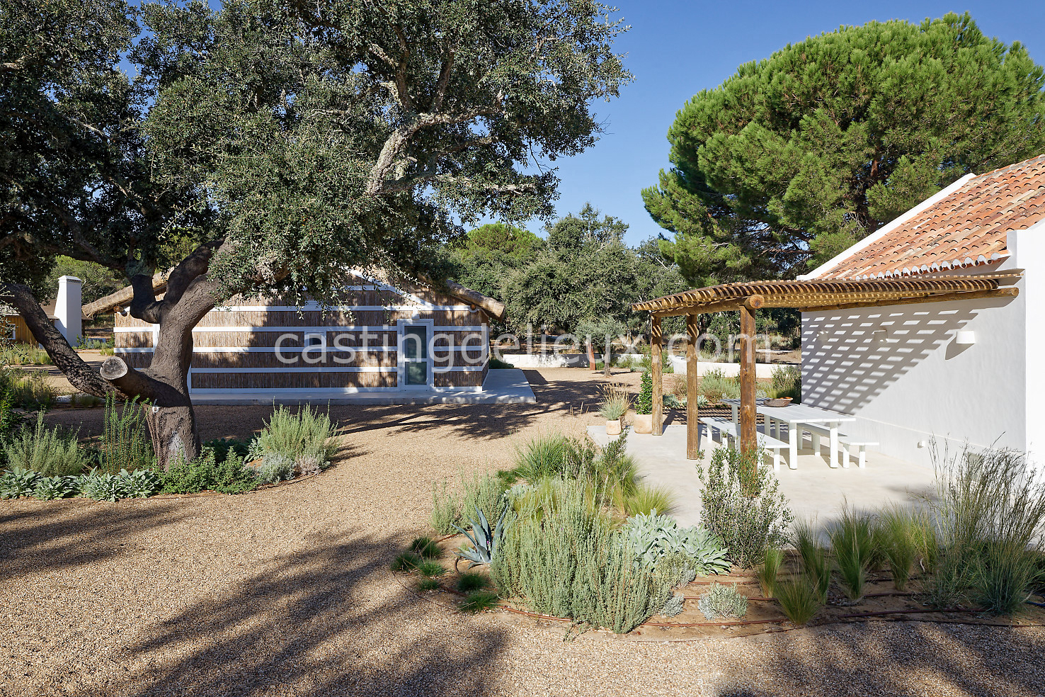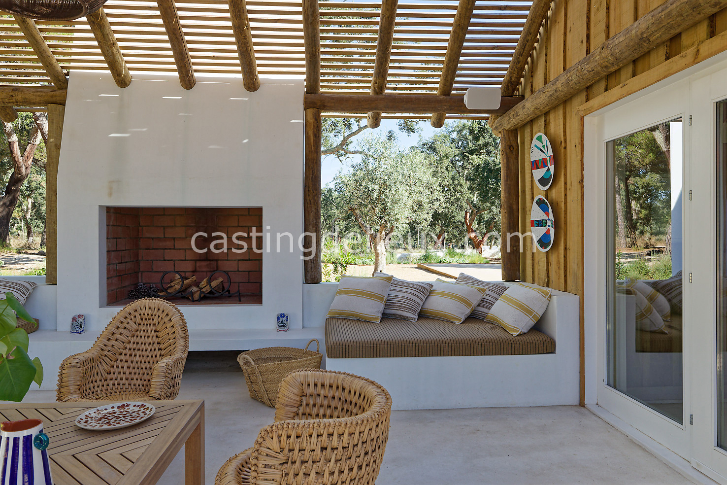 Cette maison de vacances à Comporta offre un décor lumineux et naturel, parfait pour shootings photo, tournages ou projets visuels. Les espaces intérieurs, aux murs blancs et finitions épurées, sont baignés de lumière et structurés autour d’une cheminée chaleureuse, créant une ambiance simple et élégante. L’extérieur séduit par sa terrasse en bois, un grand jardin verdoyant et une piscine traditionnelle entourée de pins, de chênes liège et de nature sauvage, typique de Comporta. La forêt attenante apporte une toile de fond naturelle et versatile pour toutes vos prises de vue. L’ensemble dégage une atmosphère sereine, ouverte sur l’extérieur, qui met en valeur la lumière naturelle et les éléments paysagers. Accessible avec stationnement, ce lieu allie confort, lumière et esthétisme pour vos projets créatifs.