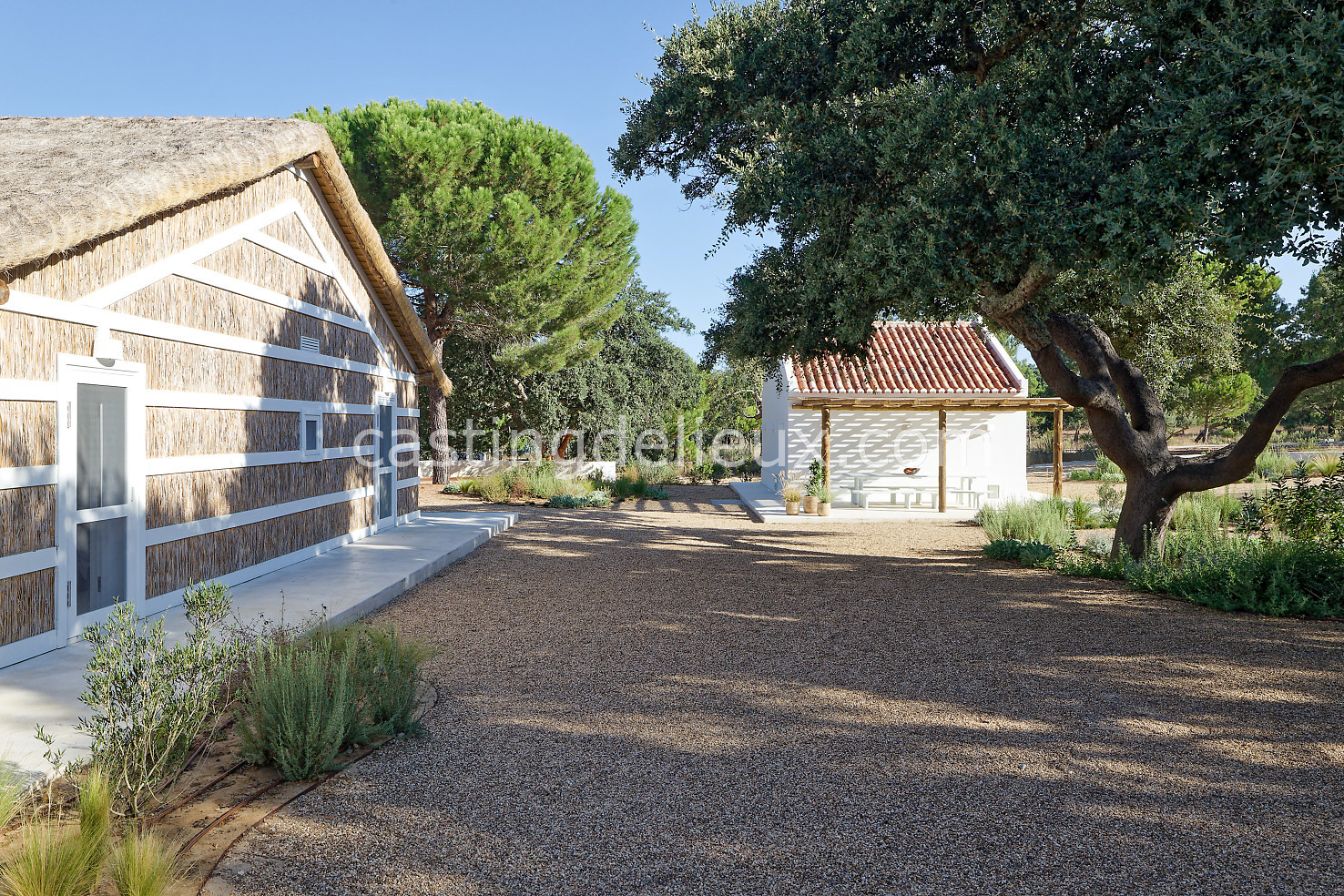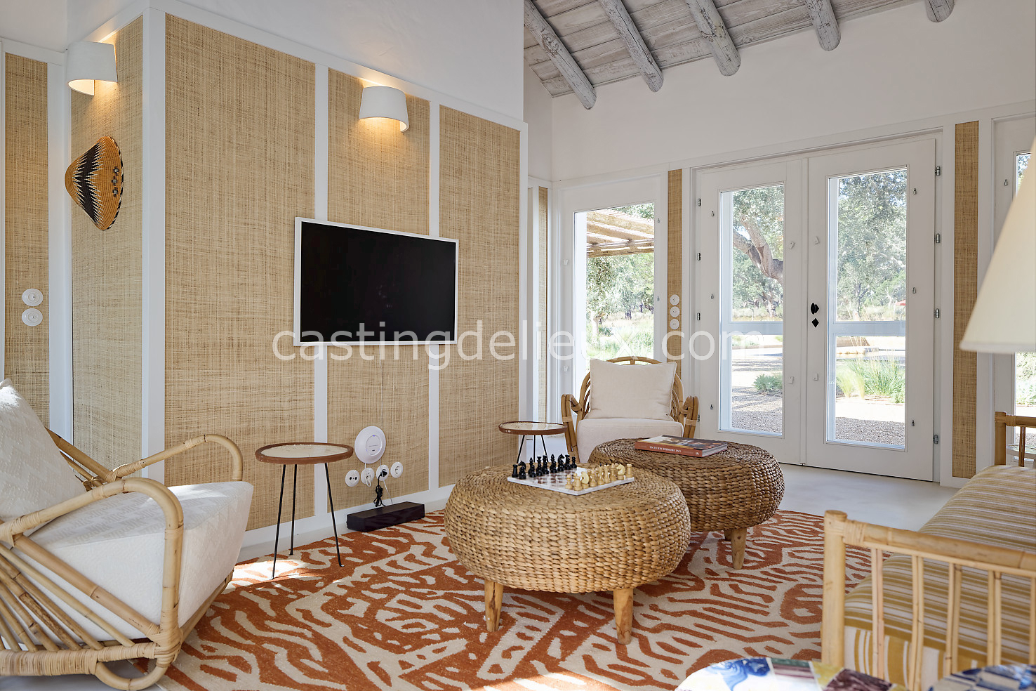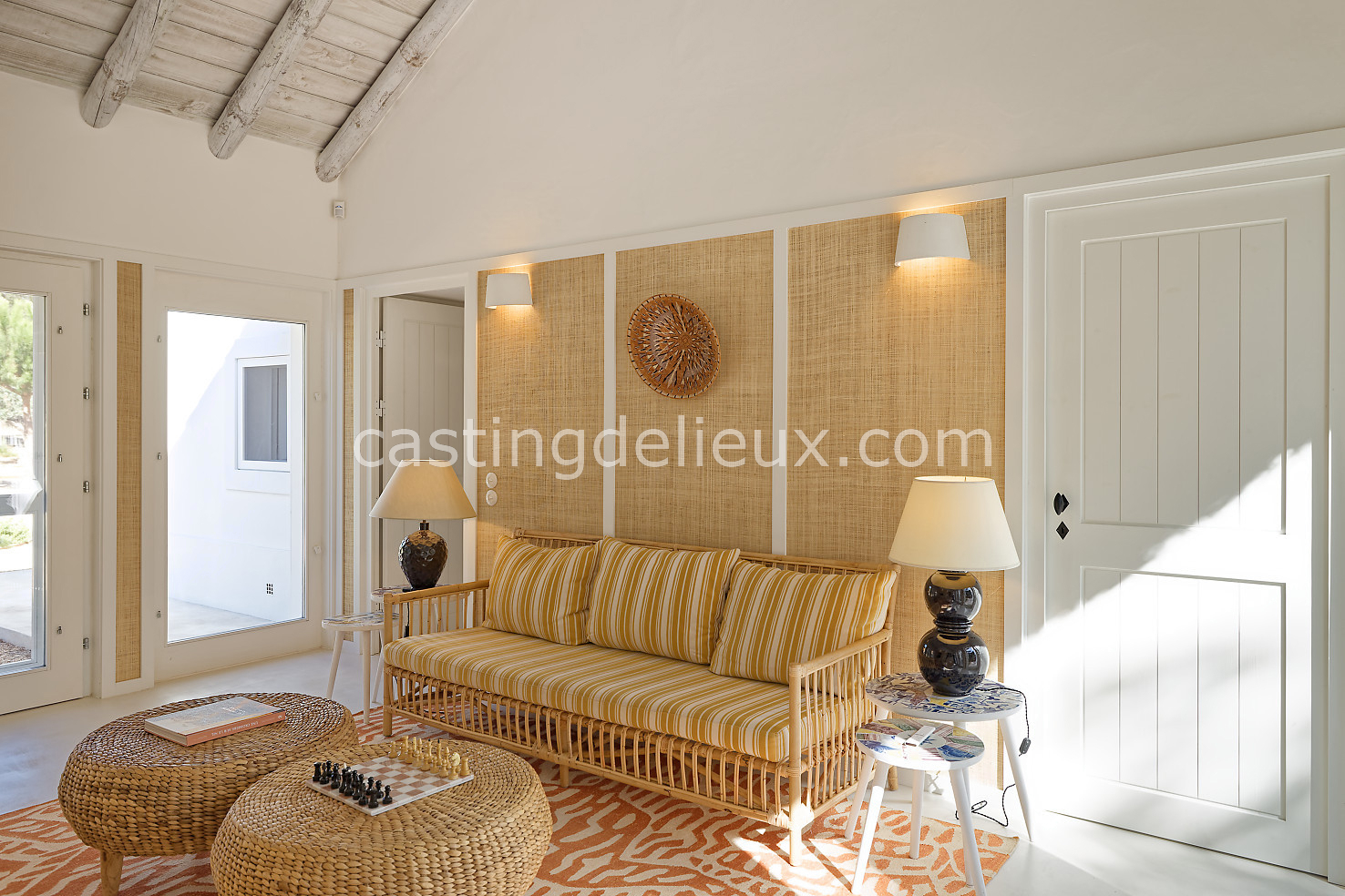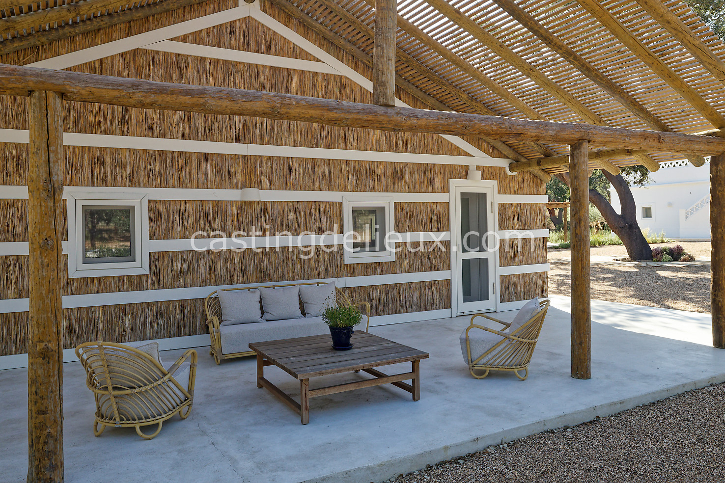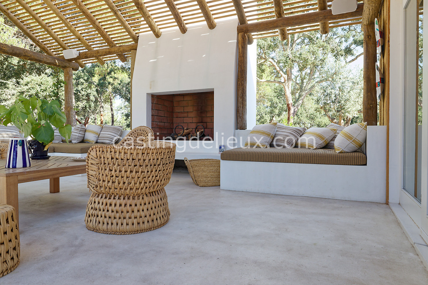 Cette maison de vacances à Comporta offre un décor lumineux et naturel, parfait pour shootings photo, tournages ou projets visuels. Les espaces intérieurs, aux murs blancs et finitions épurées, sont baignés de lumière et structurés autour d’une cheminée chaleureuse, créant une ambiance simple et élégante. L’extérieur séduit par sa terrasse en bois, un grand jardin verdoyant et une piscine traditionnelle entourée de pins, de chênes liège et de nature sauvage, typique de Comporta. La forêt attenante apporte une toile de fond naturelle et versatile pour toutes vos prises de vue. L’ensemble dégage une atmosphère sereine, ouverte sur l’extérieur, qui met en valeur la lumière naturelle et les éléments paysagers. Accessible avec stationnement, ce lieu allie confort, lumière et esthétisme pour vos projets créatifs.