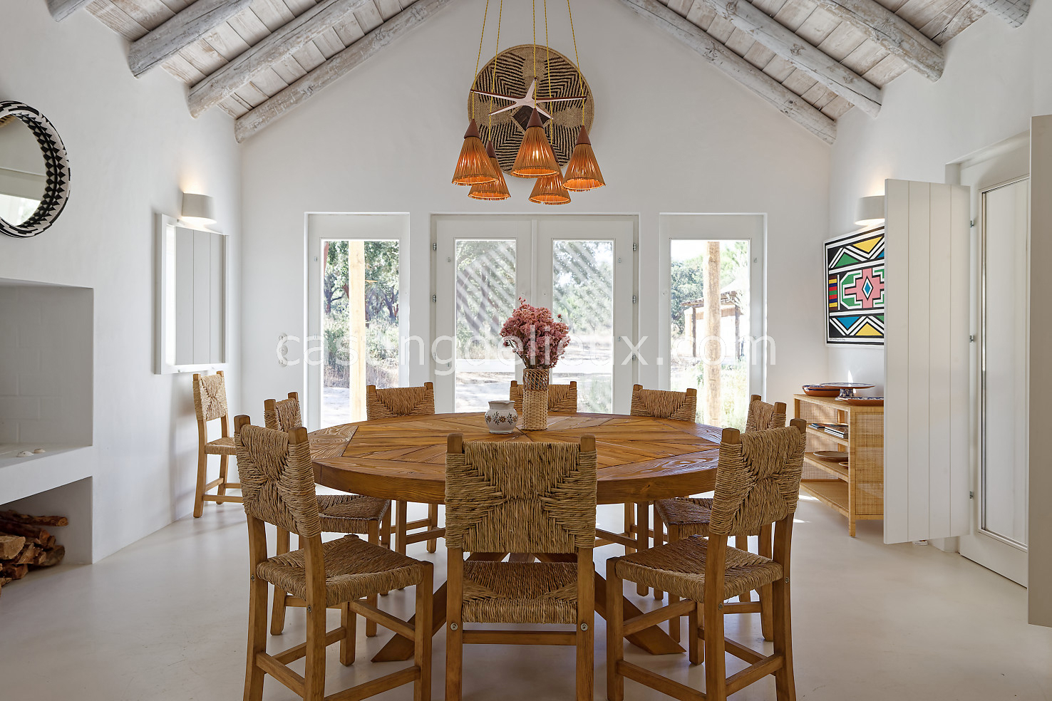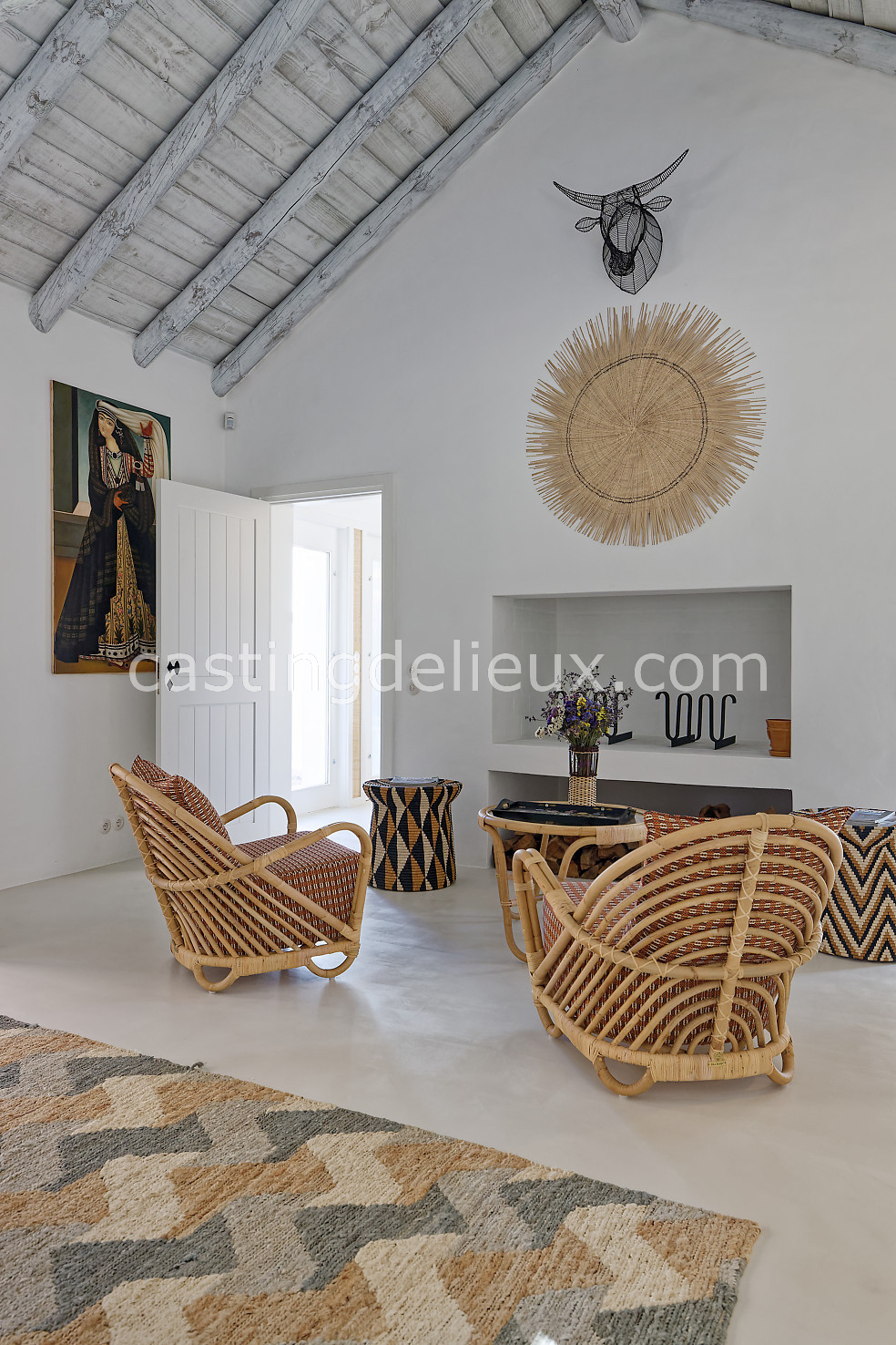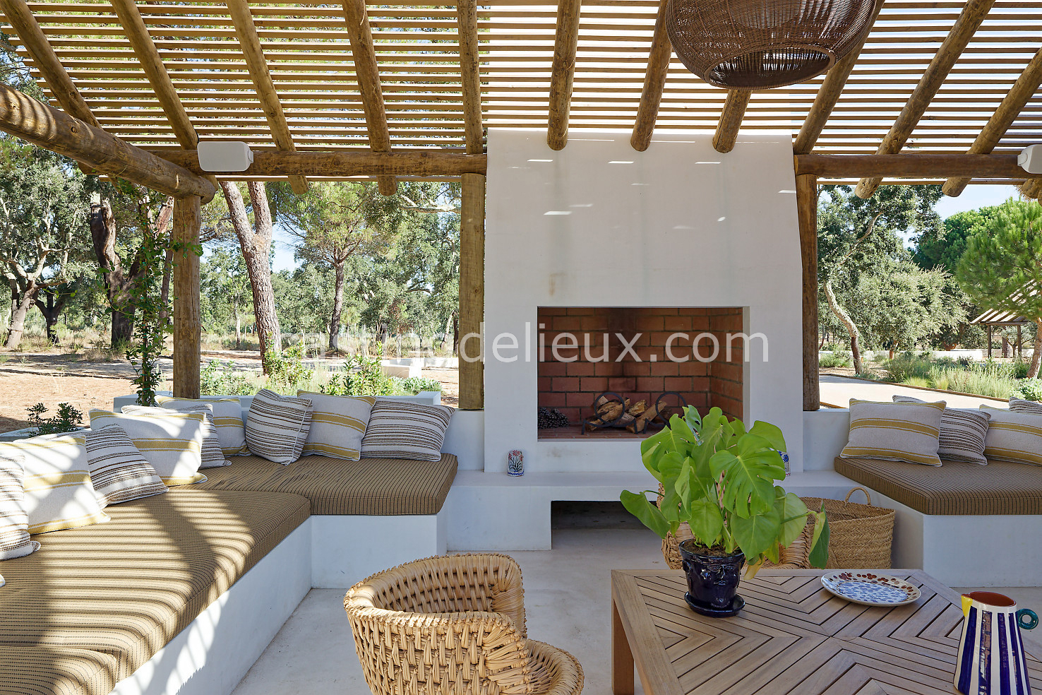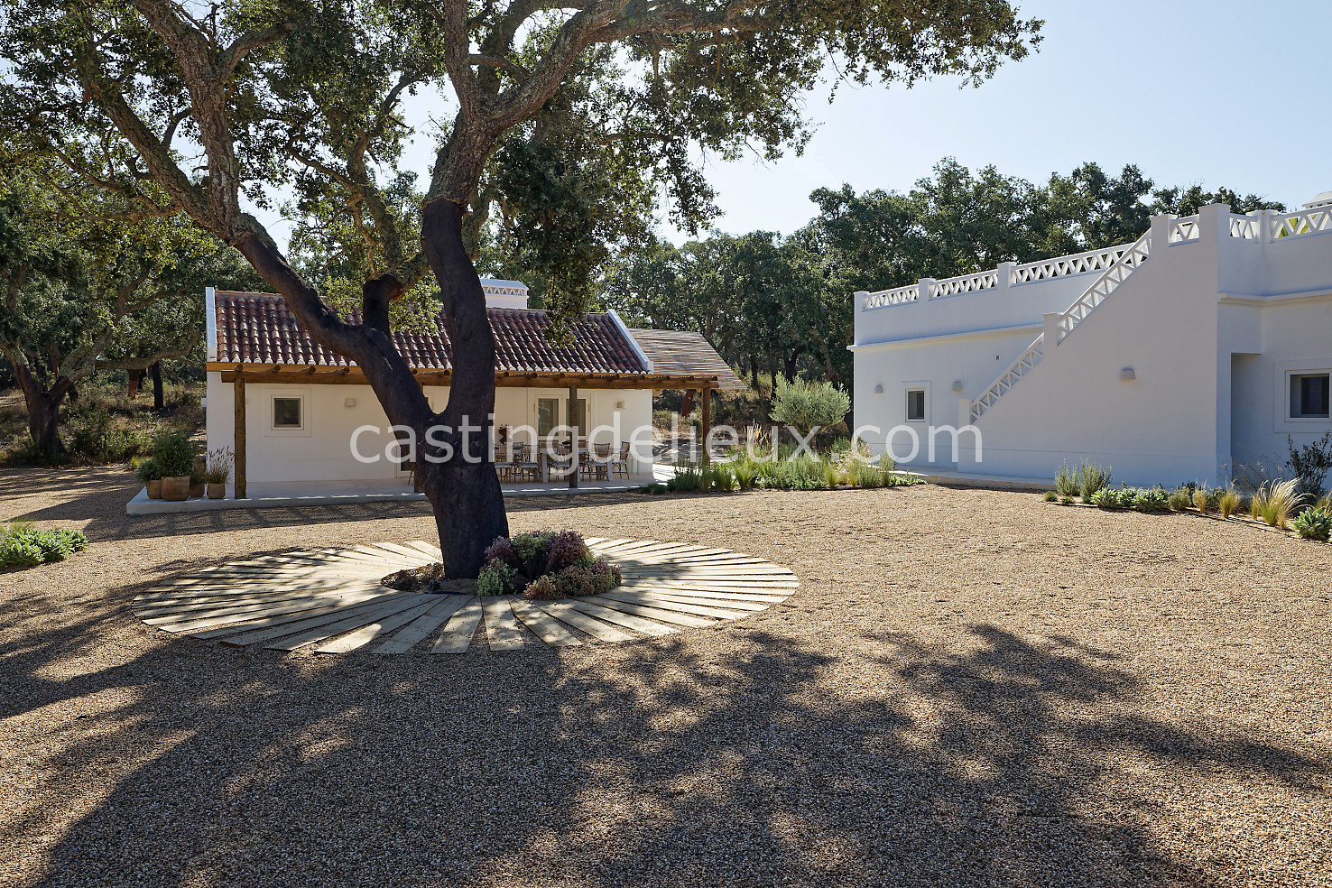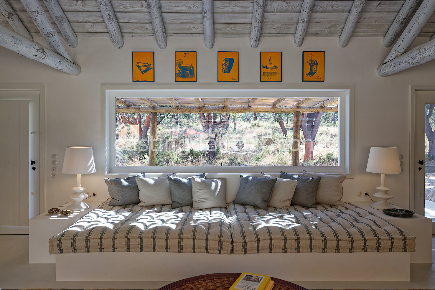 Cette maison de vacances à Comporta offre un décor lumineux et naturel, parfait pour shootings photo, tournages ou projets visuels. Les espaces intérieurs, aux murs blancs et finitions épurées, sont baignés de lumière et structurés autour d’une cheminée chaleureuse, créant une ambiance simple et élégante. L’extérieur séduit par sa terrasse en bois, un grand jardin verdoyant et une piscine traditionnelle entourée de pins, de chênes liège et de nature sauvage, typique de Comporta. La forêt attenante apporte une toile de fond naturelle et versatile pour toutes vos prises de vue. L’ensemble dégage une atmosphère sereine, ouverte sur l’extérieur, qui met en valeur la lumière naturelle et les éléments paysagers. Accessible avec stationnement, ce lieu allie confort, lumière et esthétisme pour vos projets créatifs.