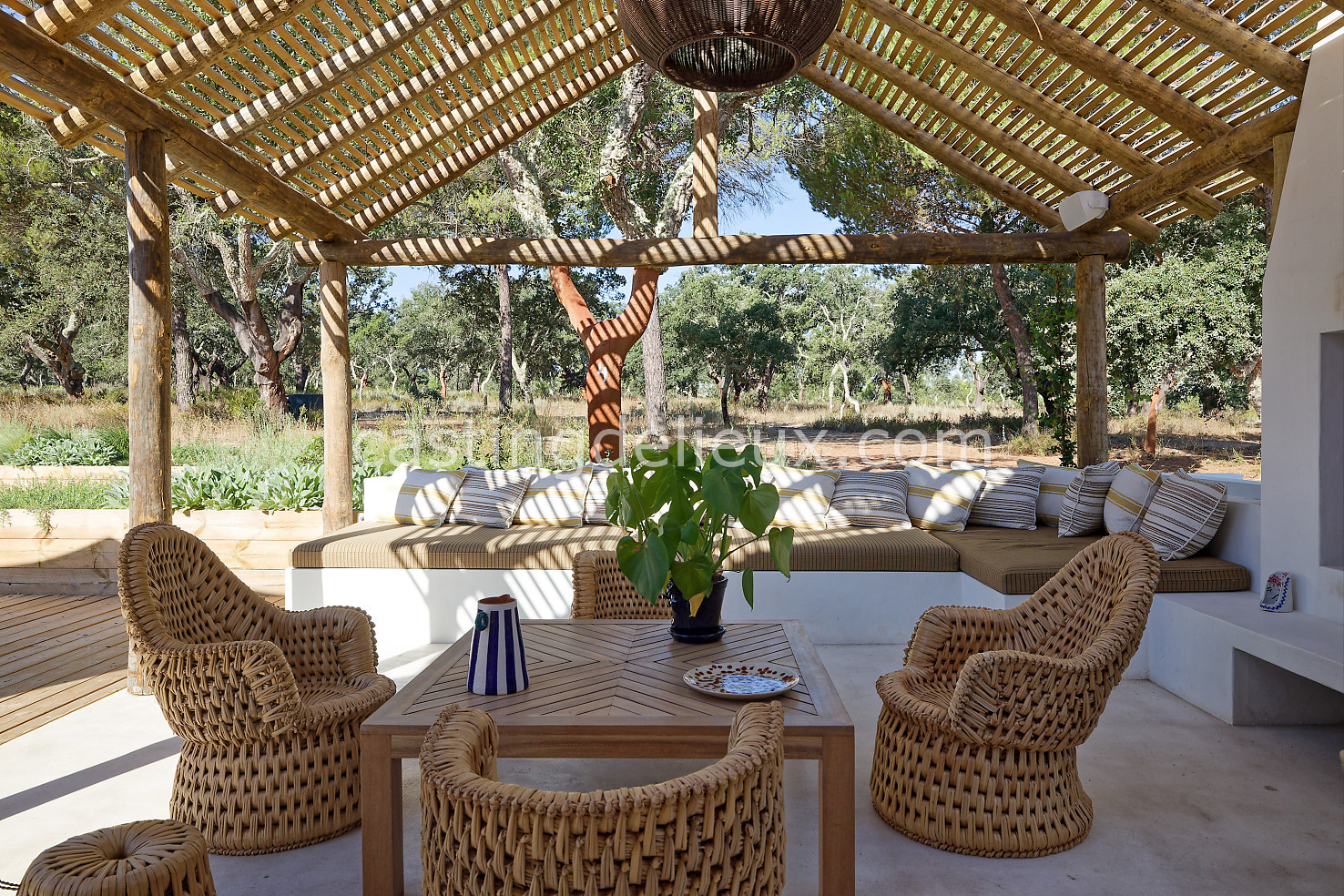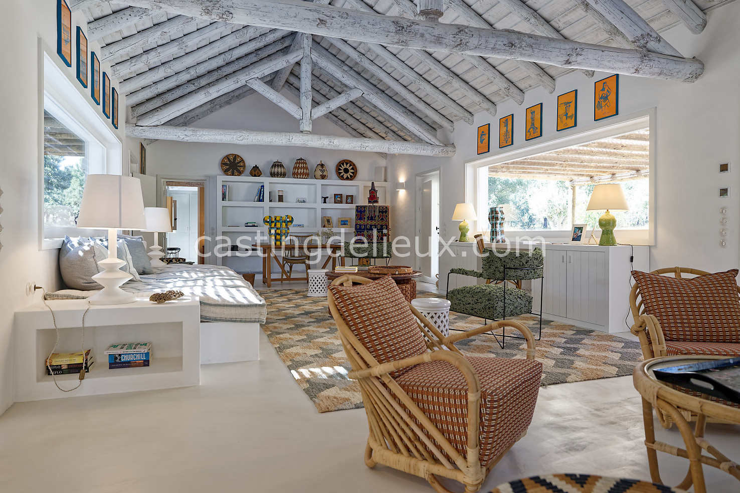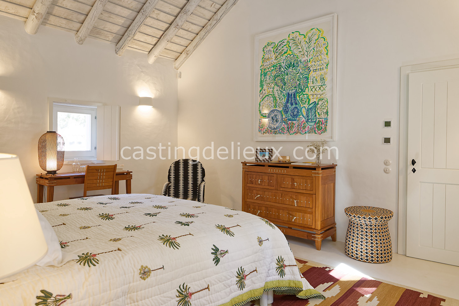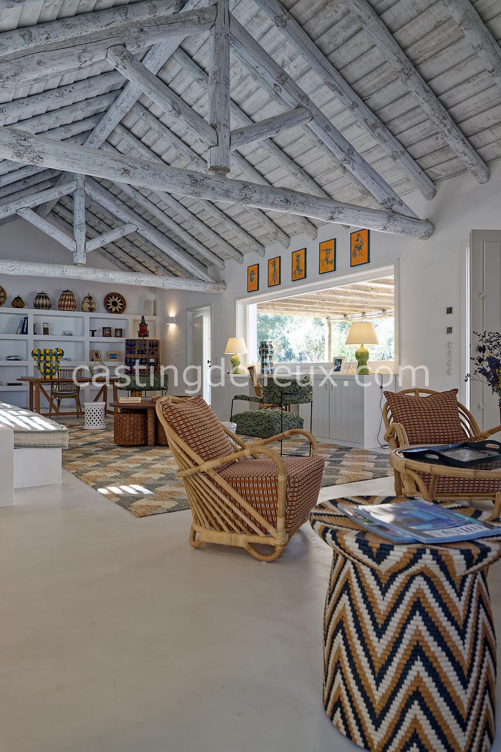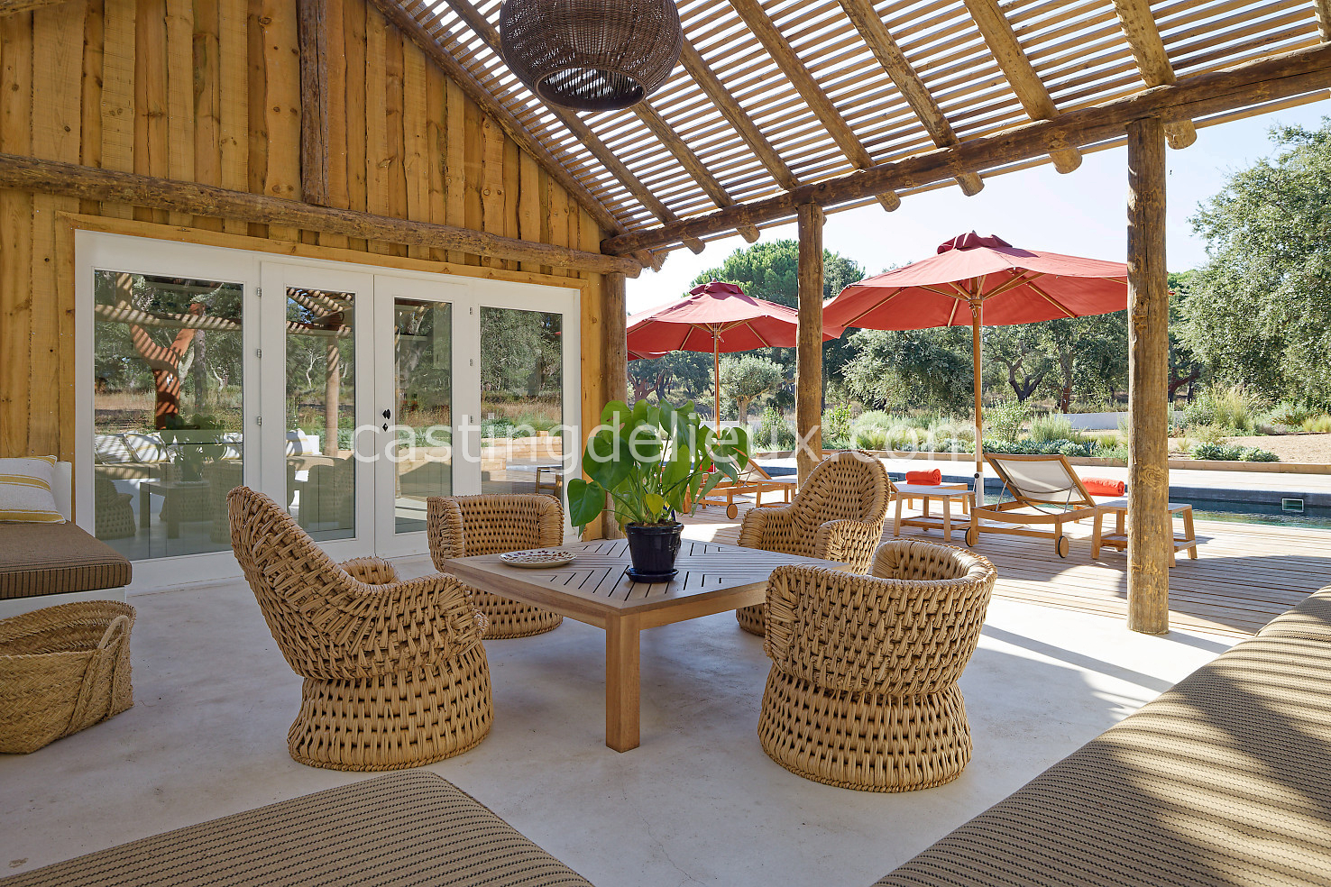 Cette maison de vacances à Comporta offre un décor lumineux et naturel, parfait pour shootings photo, tournages ou projets visuels. Les espaces intérieurs, aux murs blancs et finitions épurées, sont baignés de lumière et structurés autour d’une cheminée chaleureuse, créant une ambiance simple et élégante. L’extérieur séduit par sa terrasse en bois, un grand jardin verdoyant et une piscine traditionnelle entourée de pins, de chênes liège et de nature sauvage, typique de Comporta. La forêt attenante apporte une toile de fond naturelle et versatile pour toutes vos prises de vue. L’ensemble dégage une atmosphère sereine, ouverte sur l’extérieur, qui met en valeur la lumière naturelle et les éléments paysagers. Accessible avec stationnement, ce lieu allie confort, lumière et esthétisme pour vos projets créatifs.