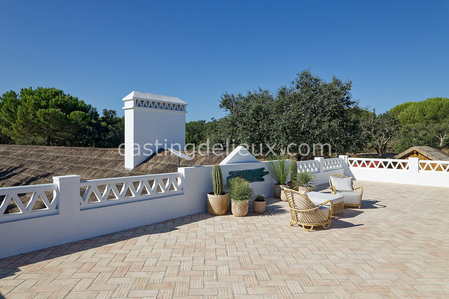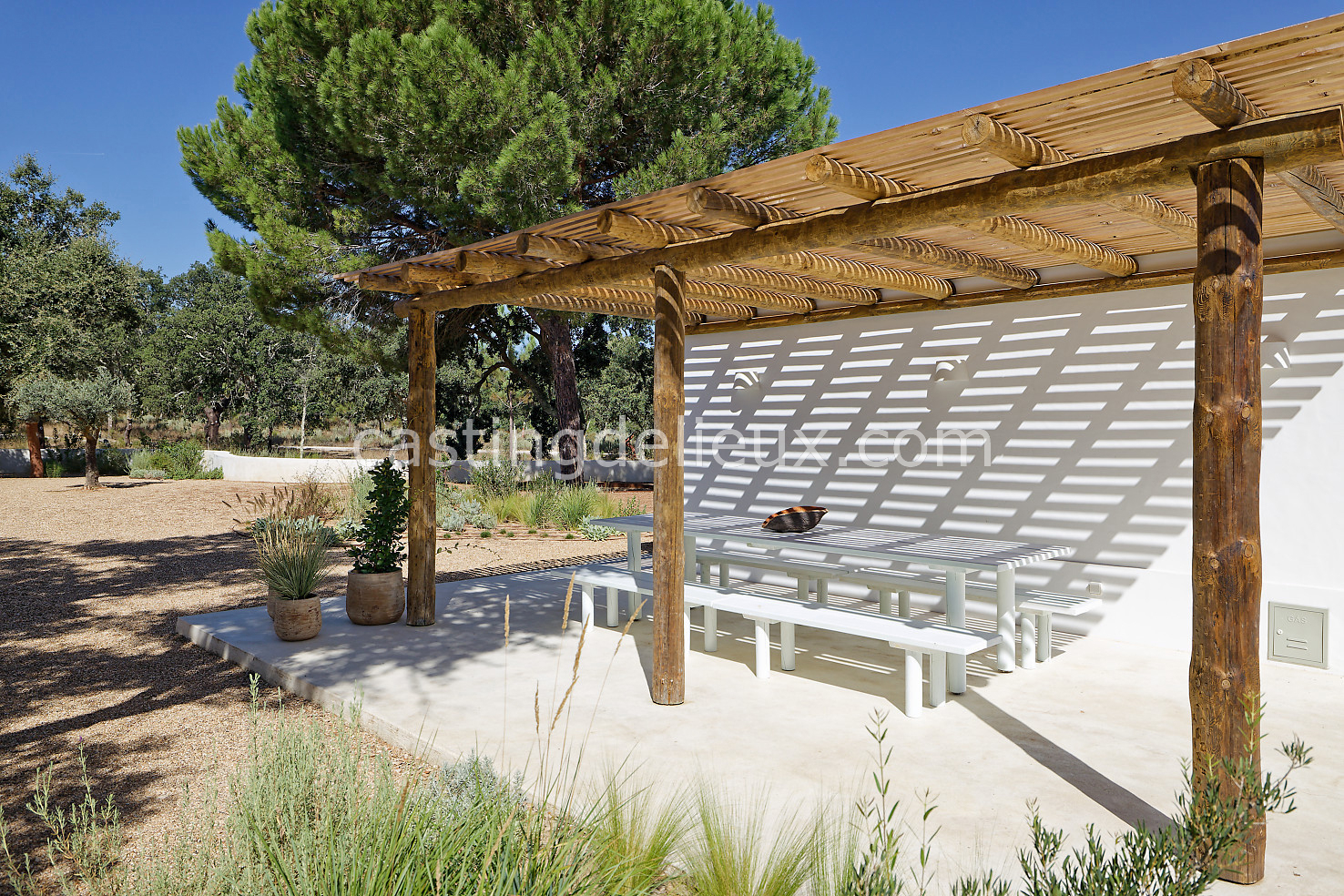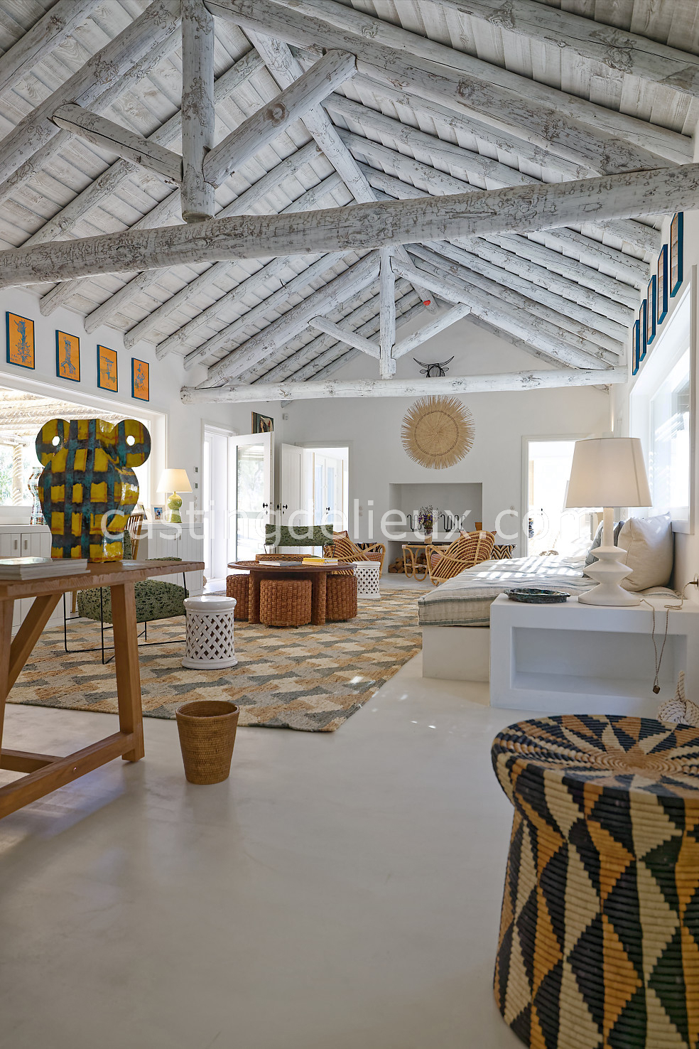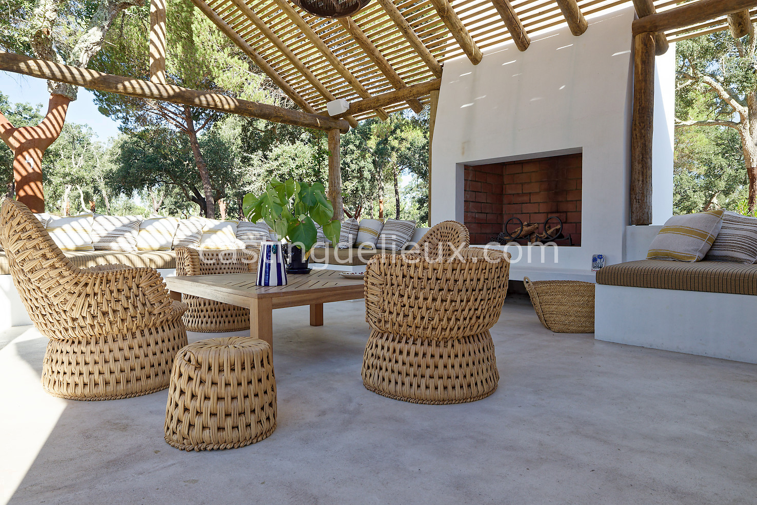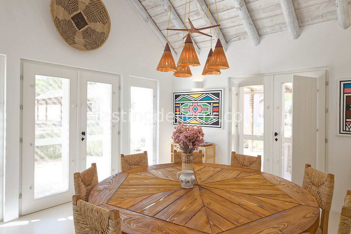 Cette maison de vacances à Comporta offre un décor lumineux et naturel, parfait pour shootings photo, tournages ou projets visuels. Les espaces intérieurs, aux murs blancs et finitions épurées, sont baignés de lumière et structurés autour d’une cheminée chaleureuse, créant une ambiance simple et élégante. L’extérieur séduit par sa terrasse en bois, un grand jardin verdoyant et une piscine traditionnelle entourée de pins, de chênes liège et de nature sauvage, typique de Comporta. La forêt attenante apporte une toile de fond naturelle et versatile pour toutes vos prises de vue. L’ensemble dégage une atmosphère sereine, ouverte sur l’extérieur, qui met en valeur la lumière naturelle et les éléments paysagers. Accessible avec stationnement, ce lieu allie confort, lumière et esthétisme pour vos projets créatifs.