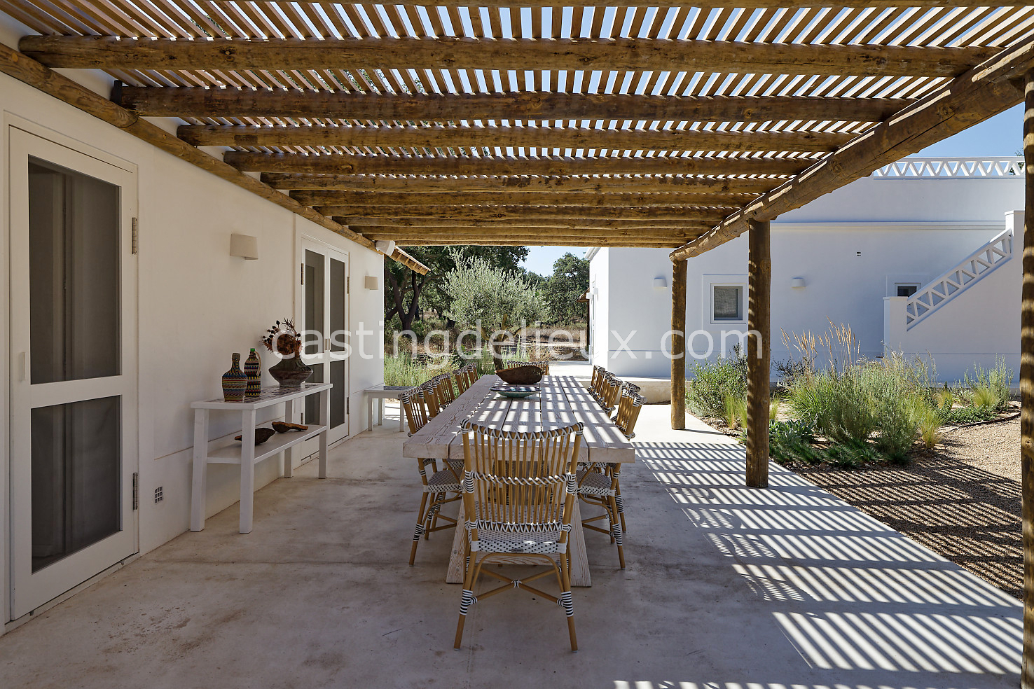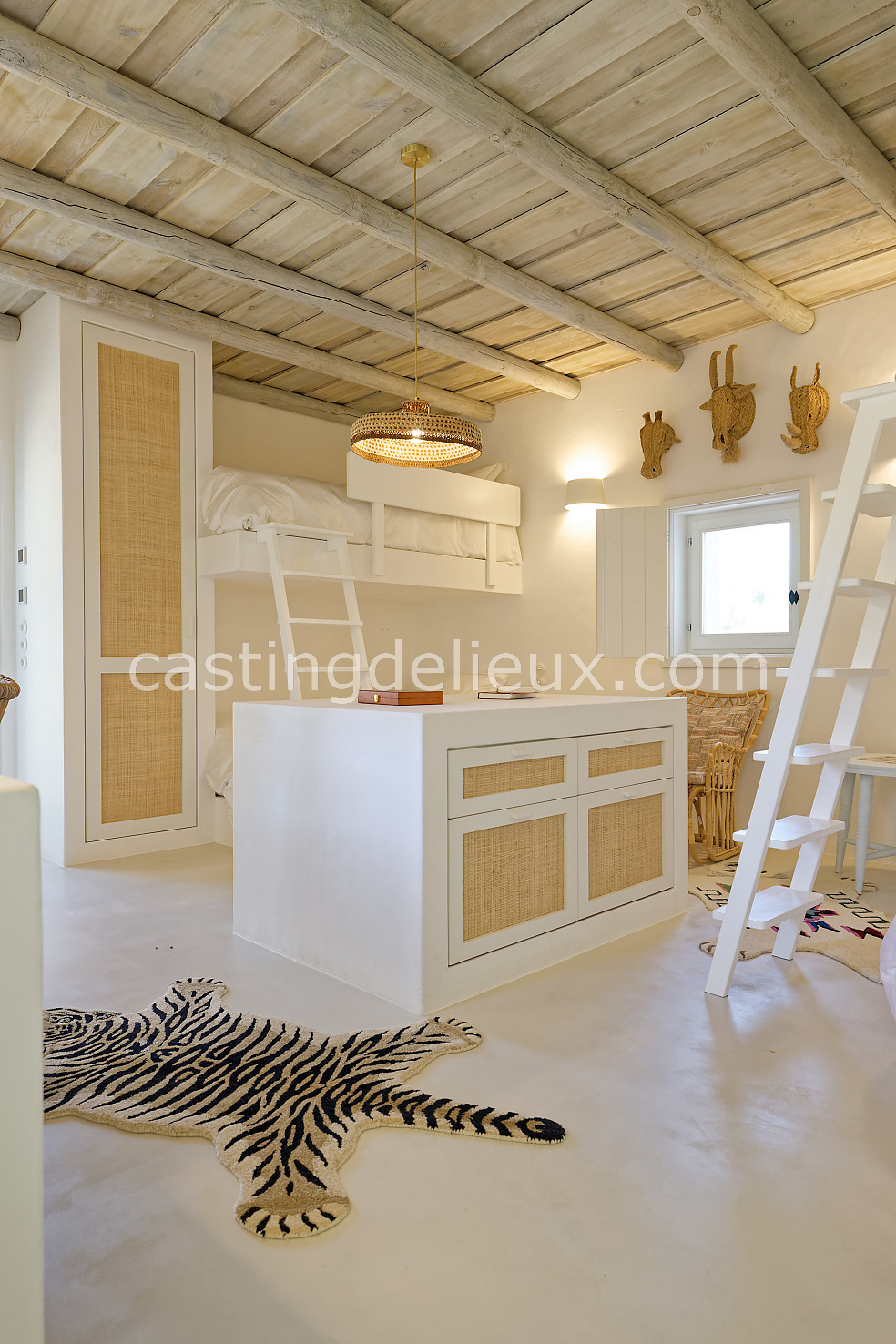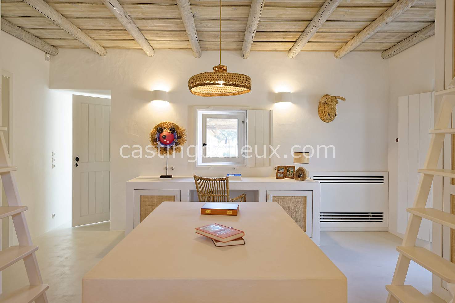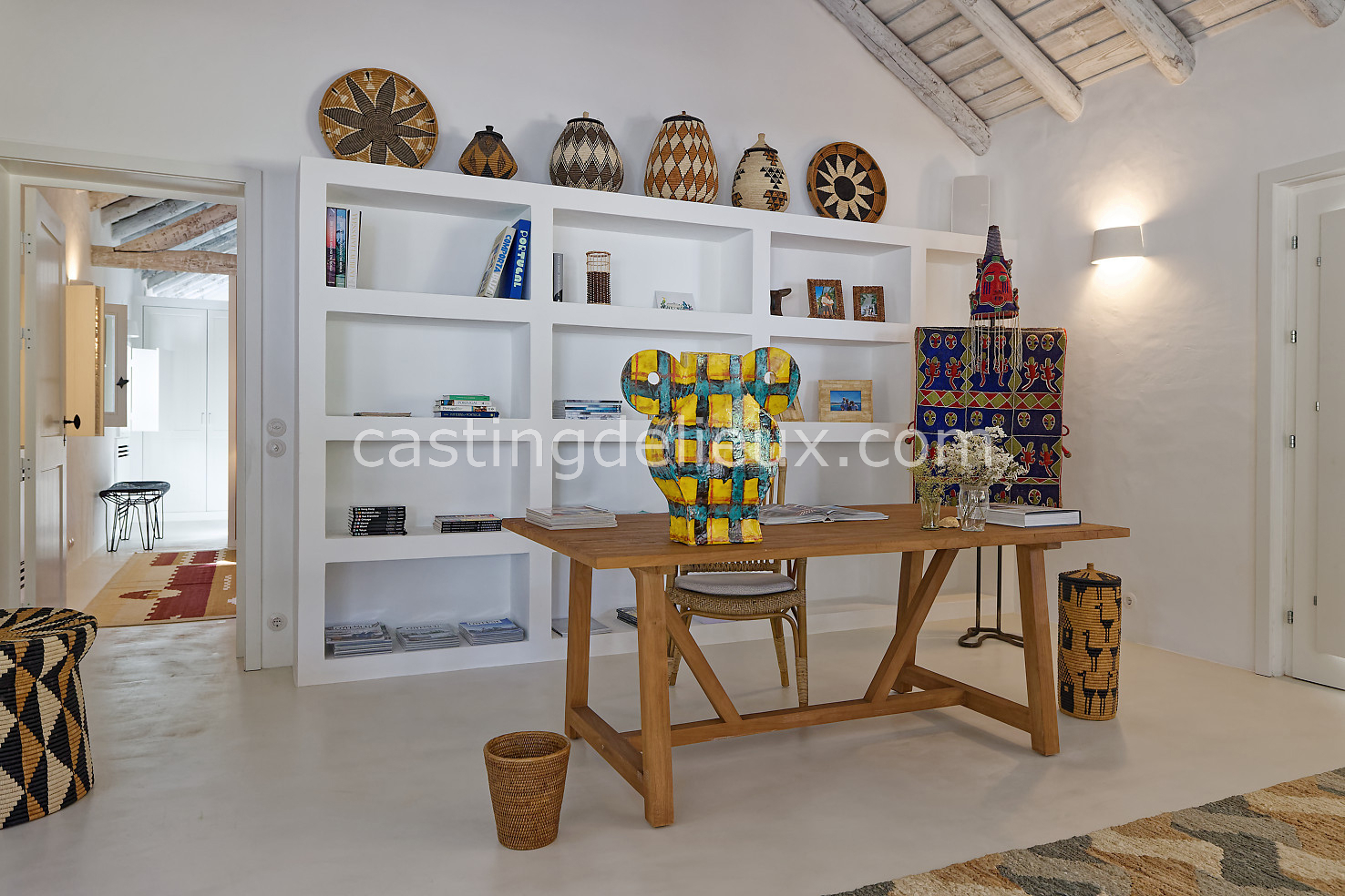 Cette maison de vacances à Comporta offre un décor lumineux et naturel, parfait pour shootings photo, tournages ou projets visuels. Les espaces intérieurs, aux murs blancs et finitions épurées, sont baignés de lumière et structurés autour d’une cheminée chaleureuse, créant une ambiance simple et élégante. L’extérieur séduit par sa terrasse en bois, un grand jardin verdoyant et une piscine traditionnelle entourée de pins, de chênes liège et de nature sauvage, typique de Comporta. La forêt attenante apporte une toile de fond naturelle et versatile pour toutes vos prises de vue. L’ensemble dégage une atmosphère sereine, ouverte sur l’extérieur, qui met en valeur la lumière naturelle et les éléments paysagers. Accessible avec stationnement, ce lieu allie confort, lumière et esthétisme pour vos projets créatifs.