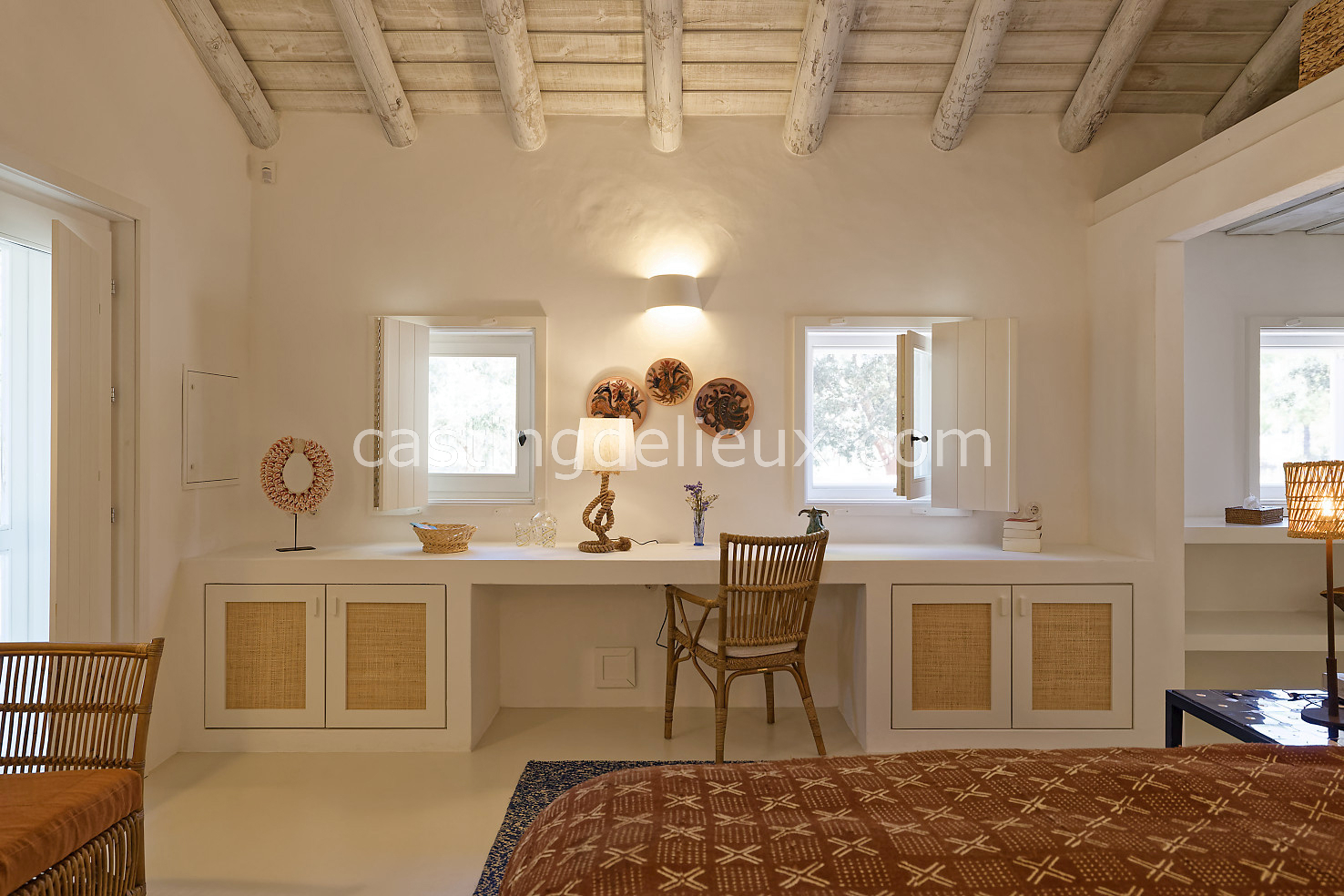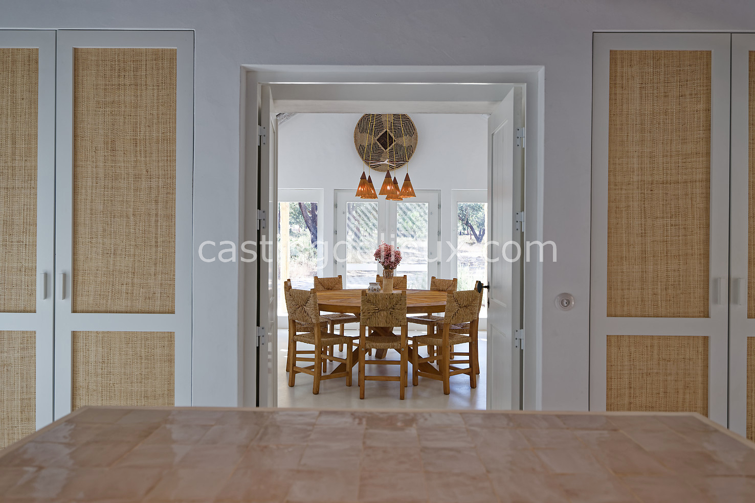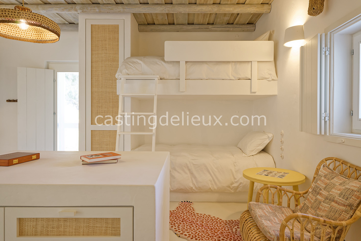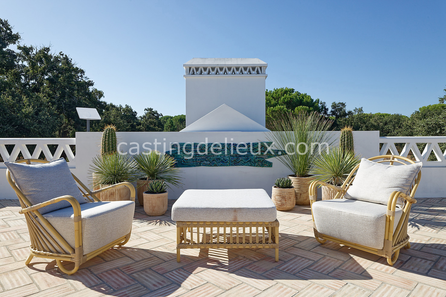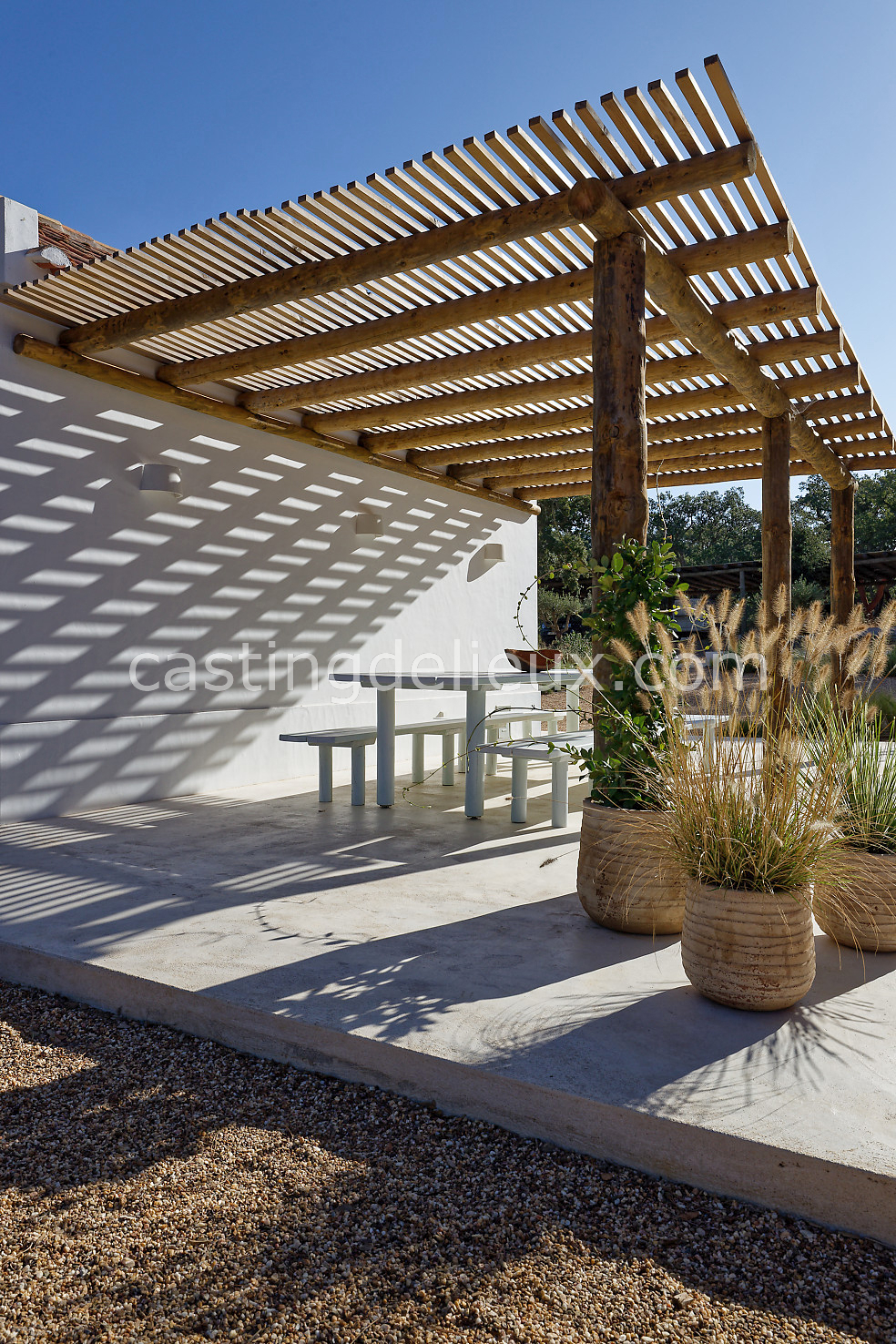 Cette maison de vacances à Comporta offre un décor lumineux et naturel, parfait pour shootings photo, tournages ou projets visuels. Les espaces intérieurs, aux murs blancs et finitions épurées, sont baignés de lumière et structurés autour d’une cheminée chaleureuse, créant une ambiance simple et élégante. L’extérieur séduit par sa terrasse en bois, un grand jardin verdoyant et une piscine traditionnelle entourée de pins, de chênes liège et de nature sauvage, typique de Comporta. La forêt attenante apporte une toile de fond naturelle et versatile pour toutes vos prises de vue. L’ensemble dégage une atmosphère sereine, ouverte sur l’extérieur, qui met en valeur la lumière naturelle et les éléments paysagers. Accessible avec stationnement, ce lieu allie confort, lumière et esthétisme pour vos projets créatifs.