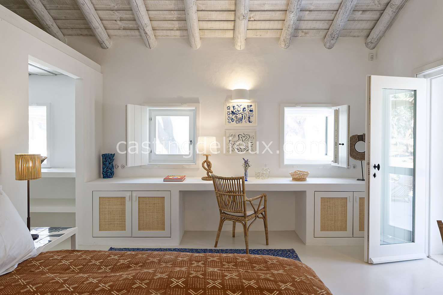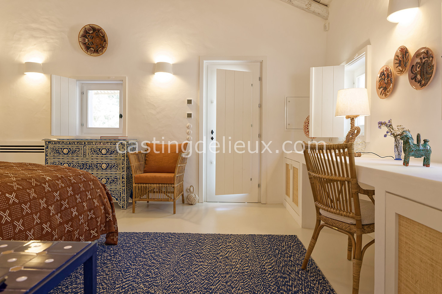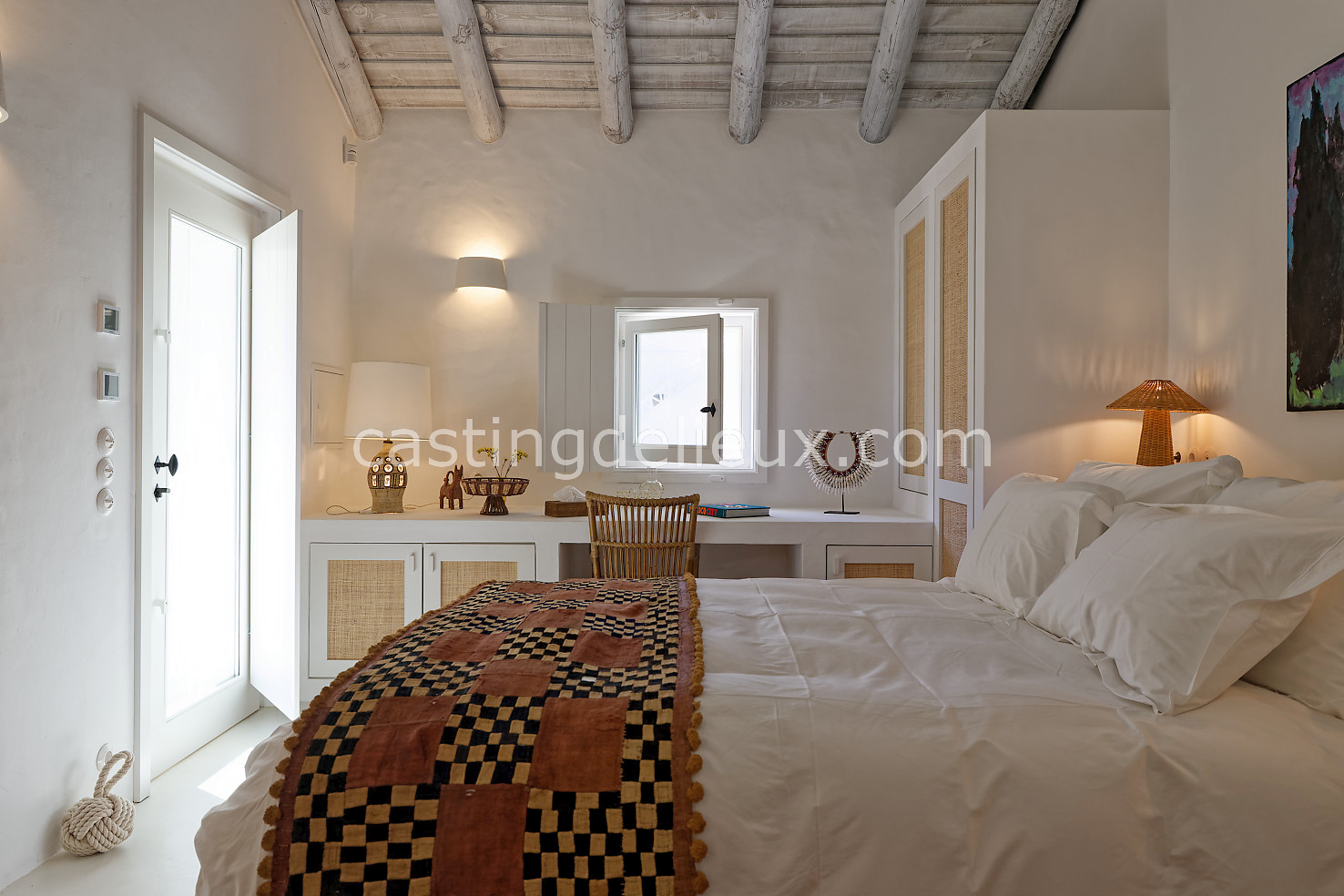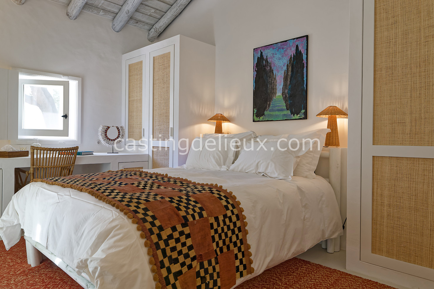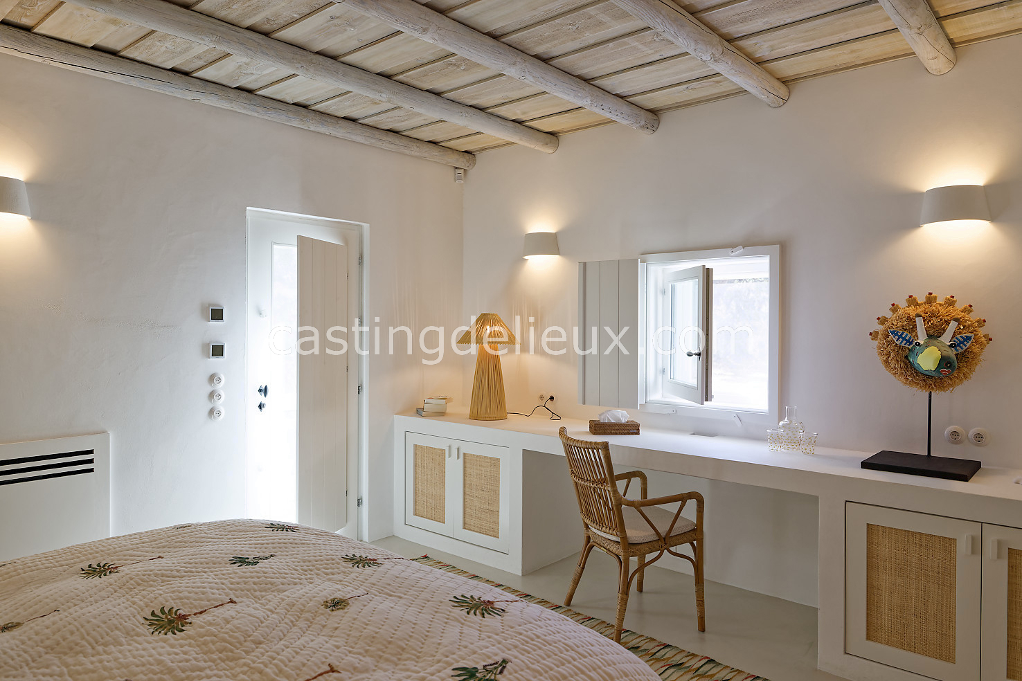 Cette maison de vacances à Comporta offre un décor lumineux et naturel, parfait pour shootings photo, tournages ou projets visuels. Les espaces intérieurs, aux murs blancs et finitions épurées, sont baignés de lumière et structurés autour d’une cheminée chaleureuse, créant une ambiance simple et élégante. L’extérieur séduit par sa terrasse en bois, un grand jardin verdoyant et une piscine traditionnelle entourée de pins, de chênes liège et de nature sauvage, typique de Comporta. La forêt attenante apporte une toile de fond naturelle et versatile pour toutes vos prises de vue. L’ensemble dégage une atmosphère sereine, ouverte sur l’extérieur, qui met en valeur la lumière naturelle et les éléments paysagers. Accessible avec stationnement, ce lieu allie confort, lumière et esthétisme pour vos projets créatifs.