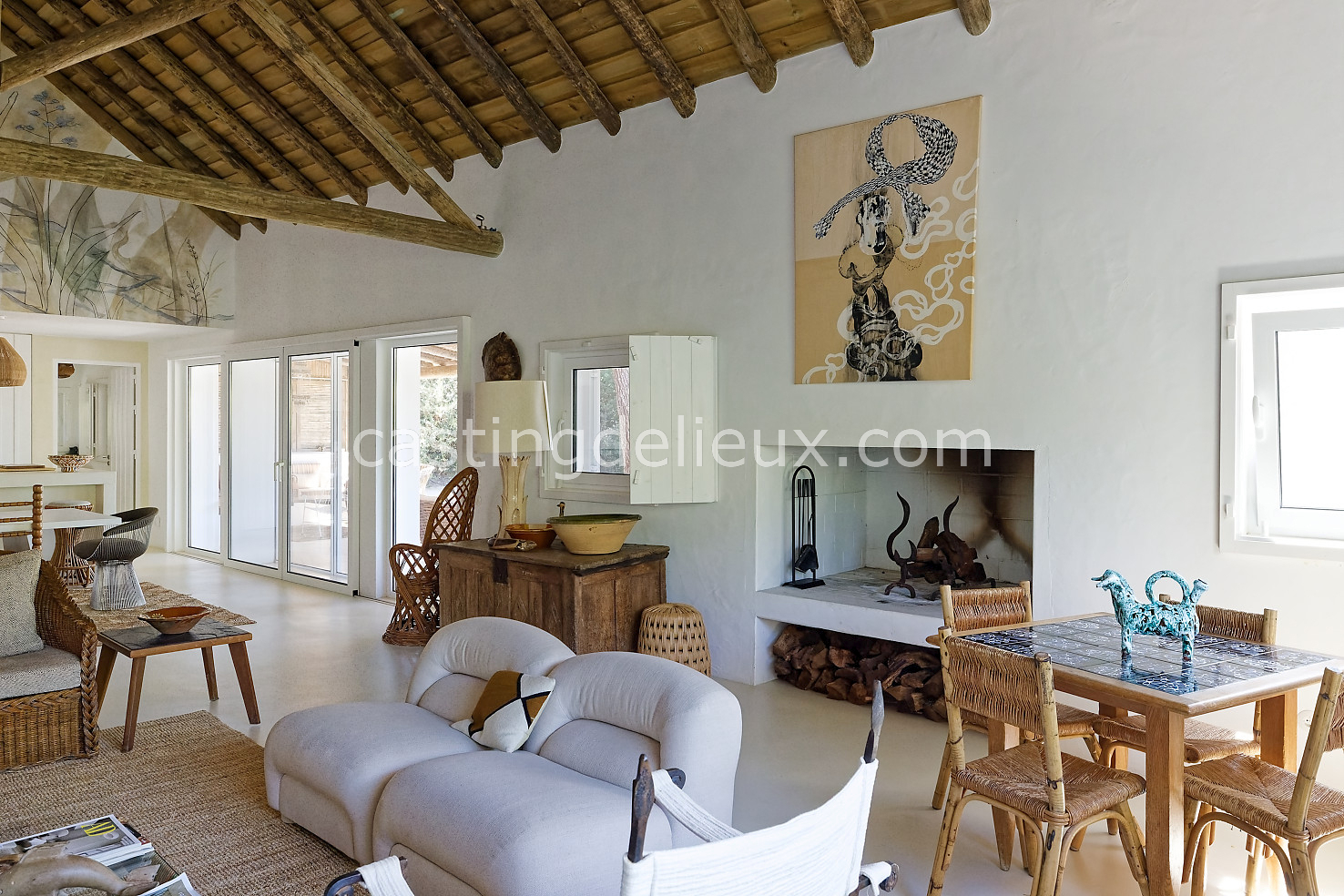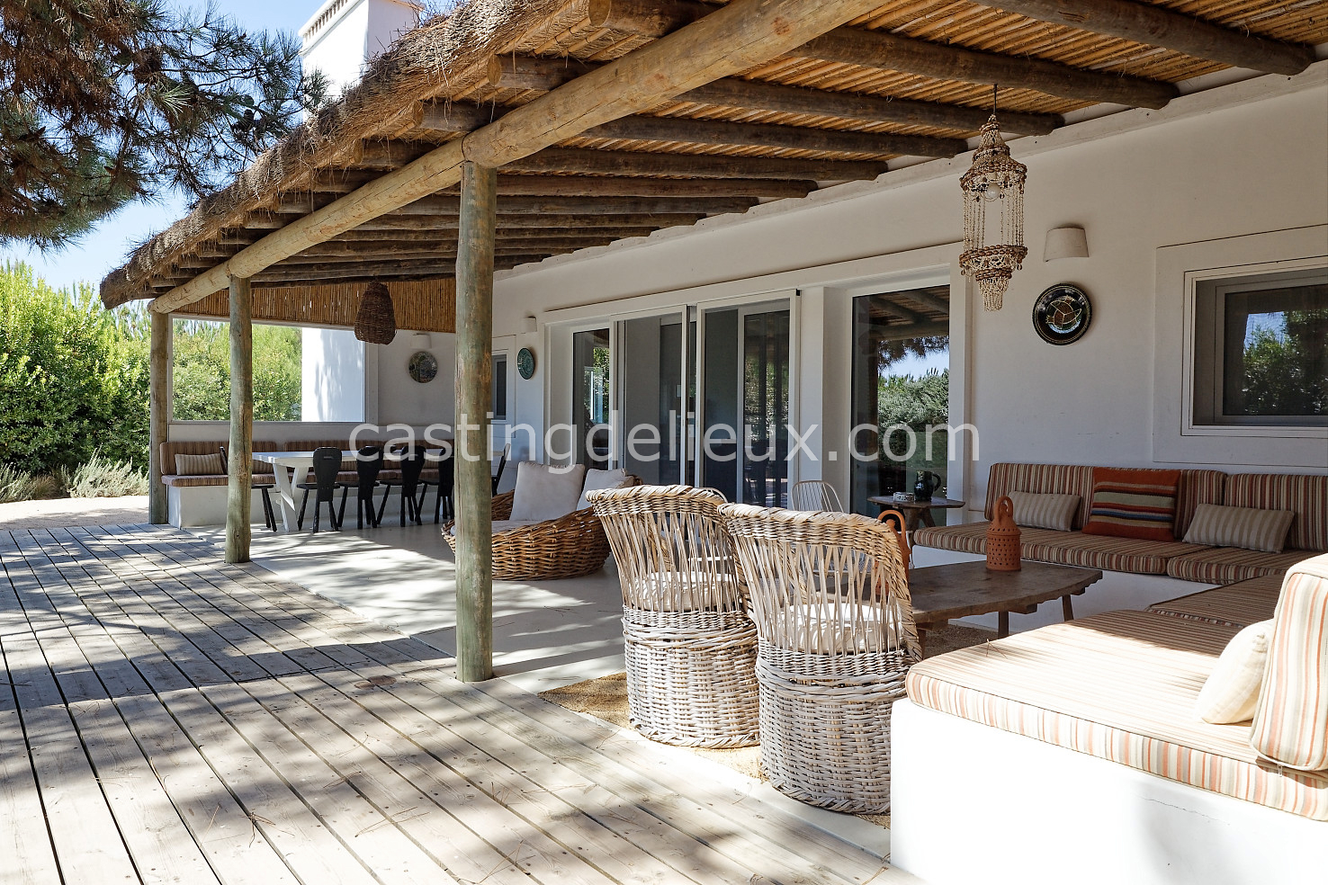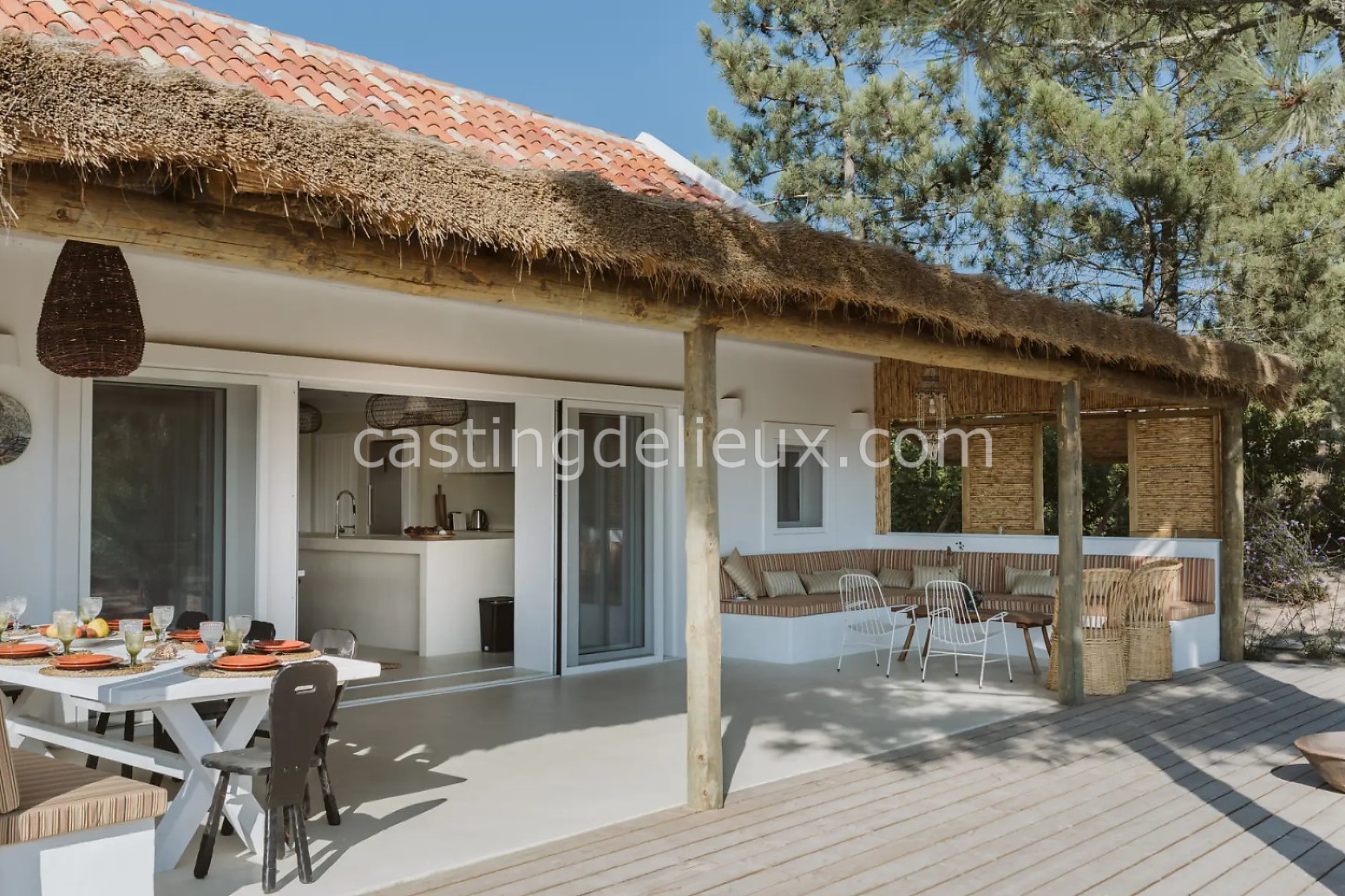Cette maison authentique à Comporta (Portugal) de 270 m² allie charme portugais typique et cadre naturel verdoyant, idéal pour shootings photo et tournages. Les espaces intérieurs affichent une ambiance classique et bohème, avec murs blancs, éléments traditionnels et une cheminée qui donne du caractère aux plans. L’extérieur offre une terrasse en bois couverte, une piscine traditionnelle et une végétation luxuriante autour, parfaits pour des prises de vue variées. Avec son environnement naturel et ses volumes contrastés, ce décor portugais offre une grande liberté créative pour vos projets visuels.
