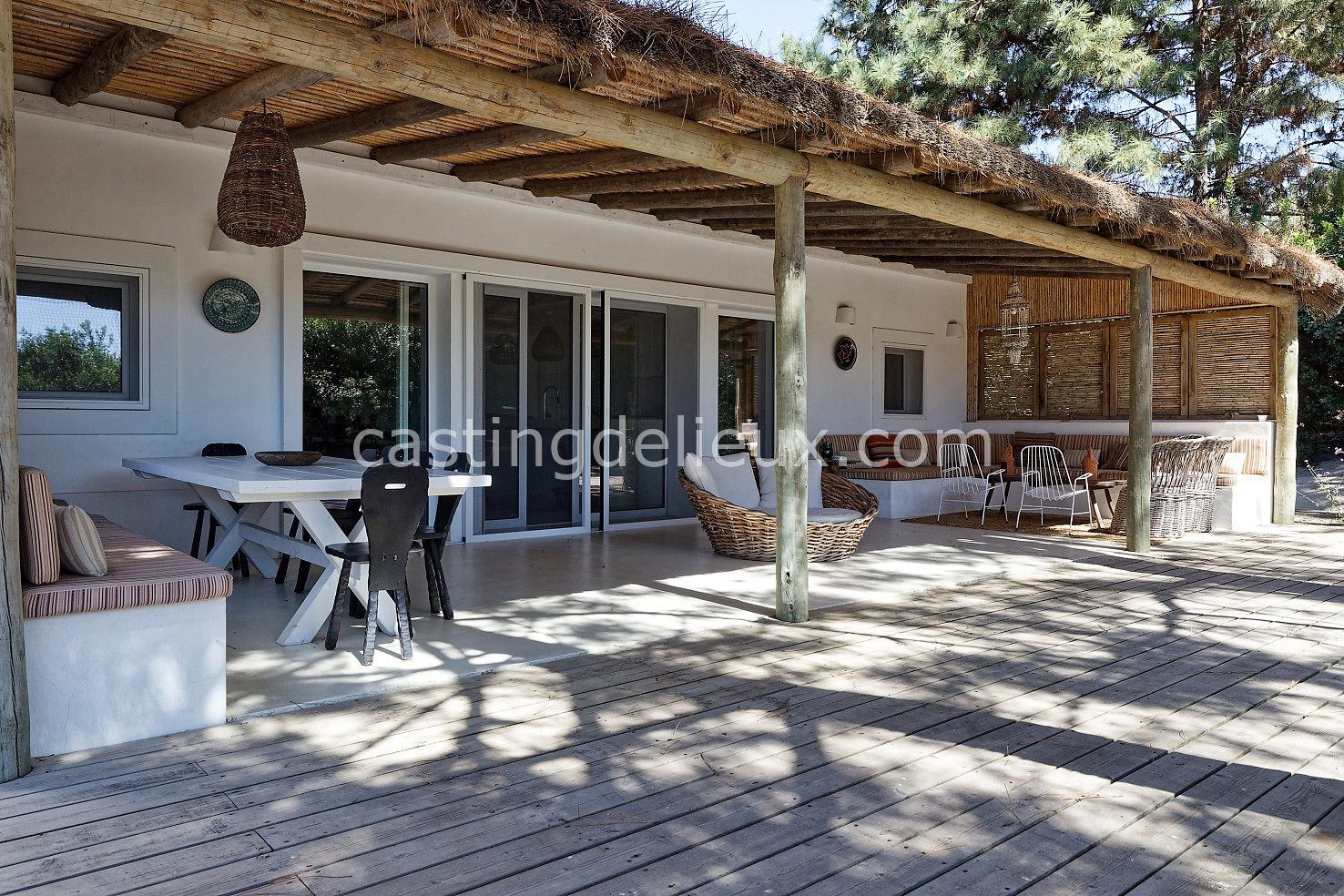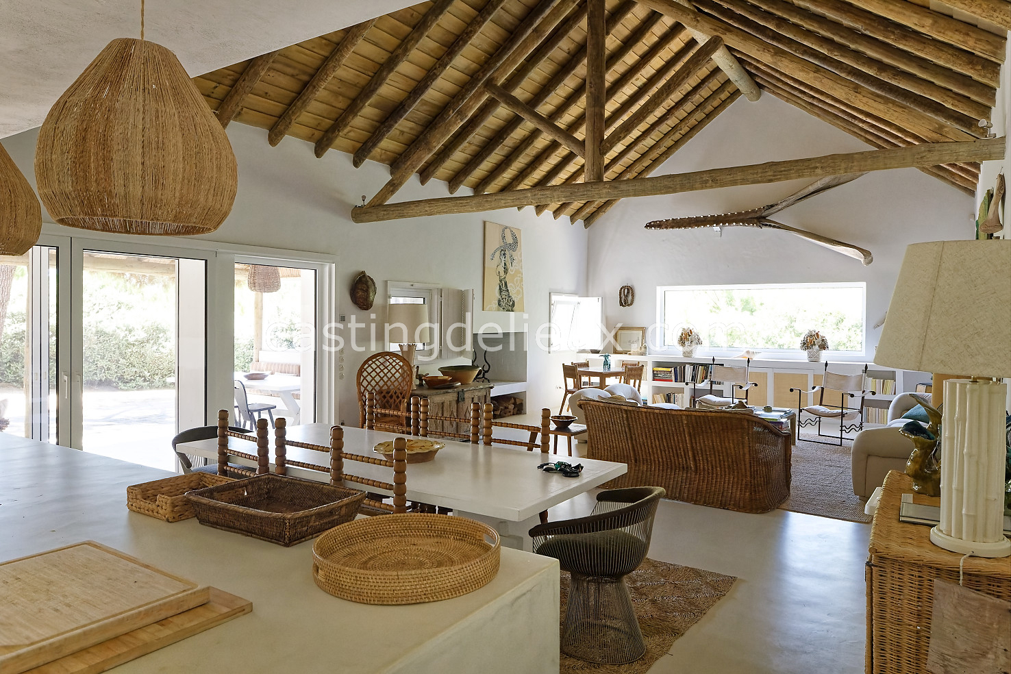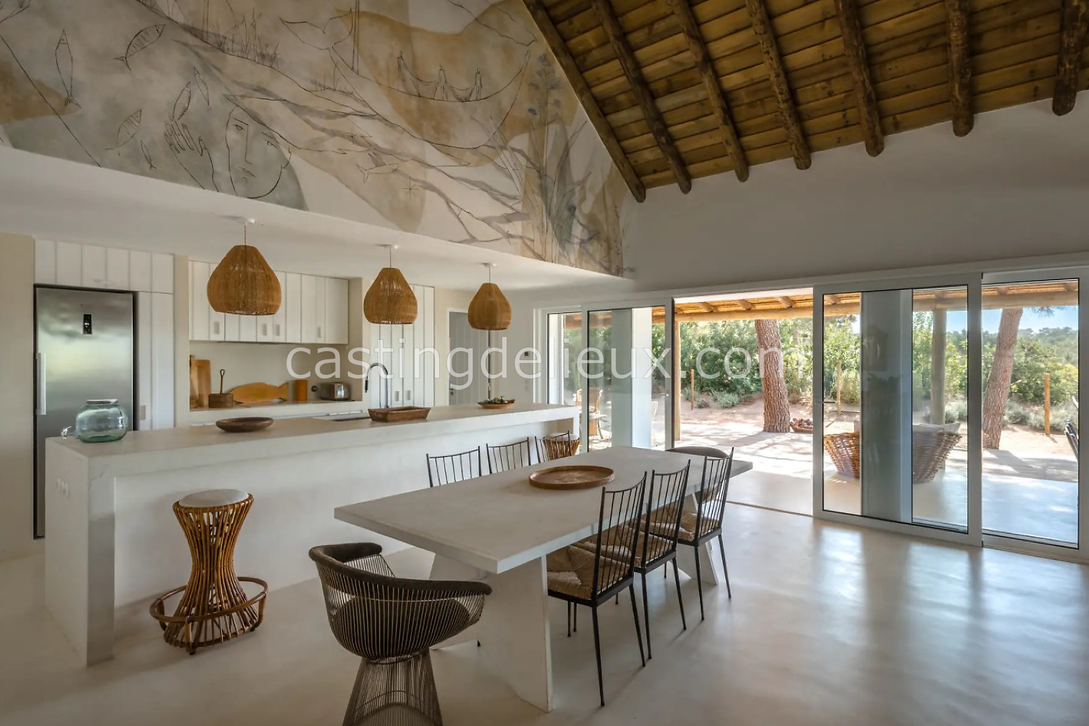 Cette maison authentique à Comporta (Portugal) de 270 m² allie charme portugais typique et cadre naturel verdoyant, idéal pour shootings photo et tournages. Les espaces intérieurs affichent une ambiance classique et bohème, avec murs blancs, éléments traditionnels et une cheminée qui donne du caractère aux plans. L’extérieur offre une terrasse en bois couverte, une piscine traditionnelle et une végétation luxuriante autour, parfaits pour des prises de vue variées. Avec son environnement naturel et ses volumes contrastés, ce décor portugais offre une grande liberté créative pour vos projets visuels.