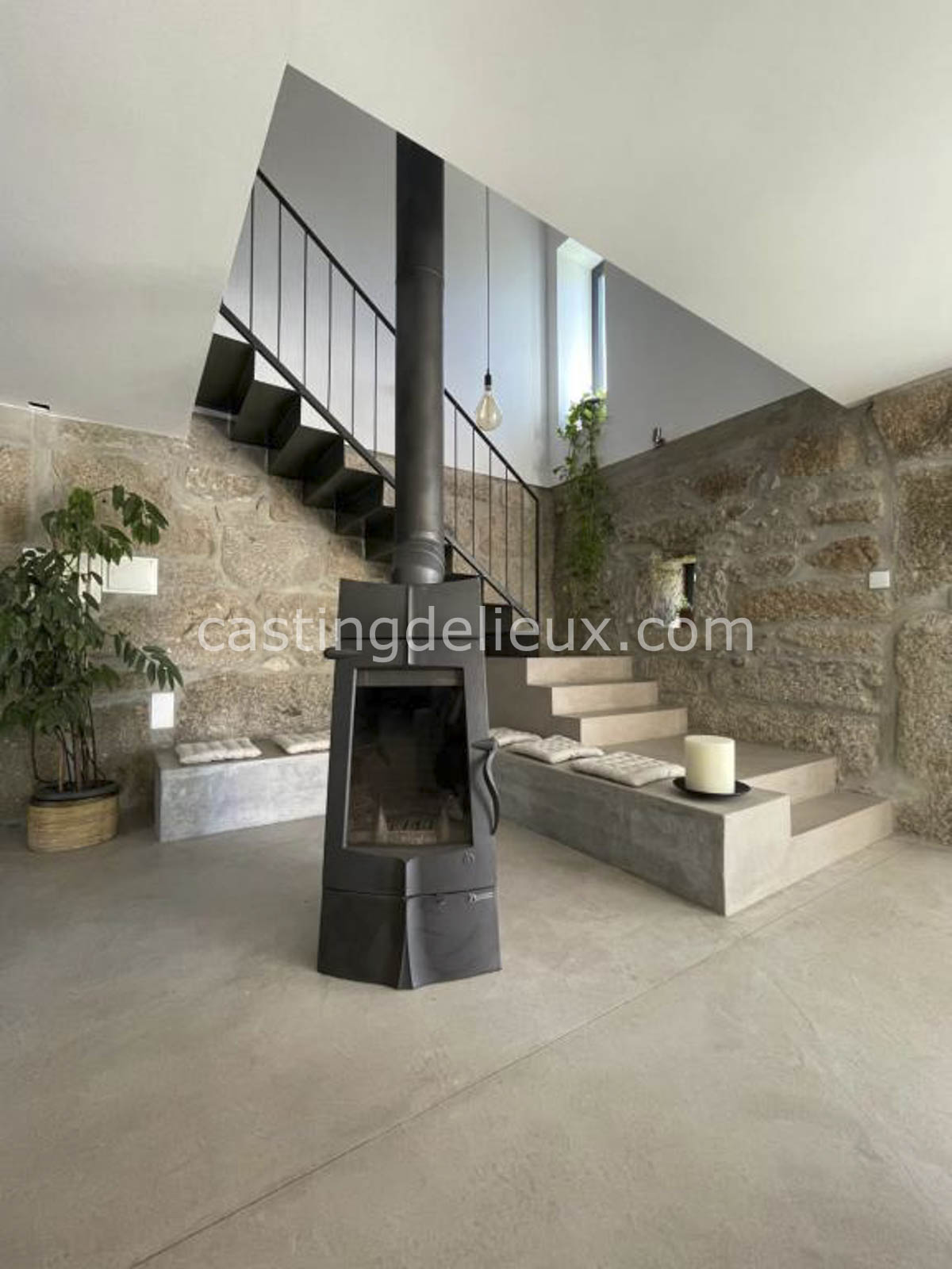 | Ambiance intérieure | Sol béton cirée, Verrière / baie vitrée, Pierre apparente, Sol bois / parquet, Murs blancs / Enduits naturels, Escalier remarquable |