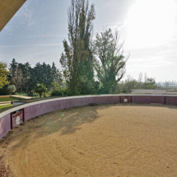 De nombreux bâtiments de qualité comme des écuries, des granges, un manège couvert, une arène.