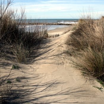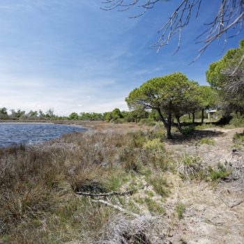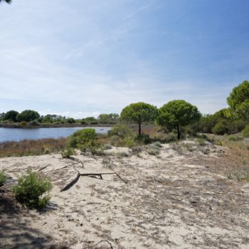 Site naturel en pleine nature en Camargue. Lac, dunes, digues, plage…
