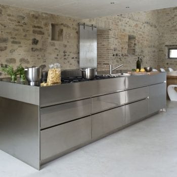 cheminée, cuisine ouverte, baie vitrée