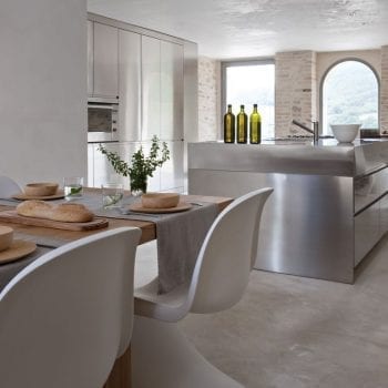 cheminée, cuisine ouverte, baie vitrée