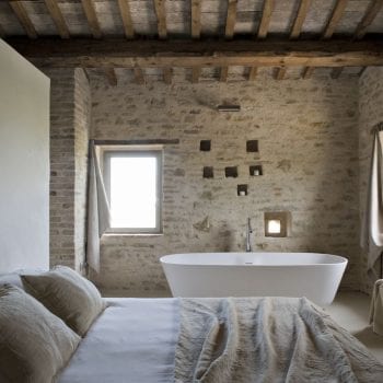 La maison se situe sur les collines de Treia, au cœur des Marches, petit bijou caché d’Italie appelé aussi la nouvelle Toscane avec ses oliviers, ses vignobles, ses monastères et ses villes fortifiées à perte de vue.