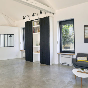 parquet, hauteur sous plafond, verrière / patio, sol béton