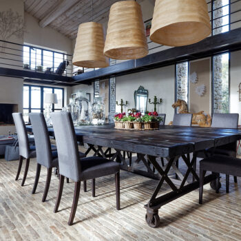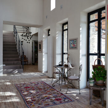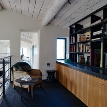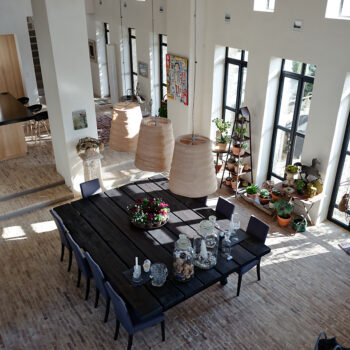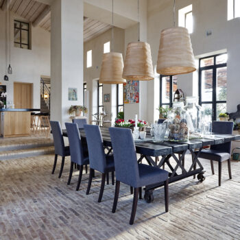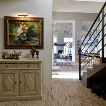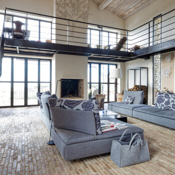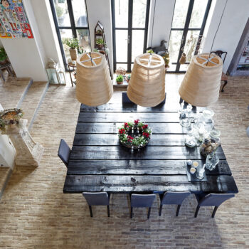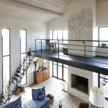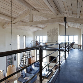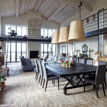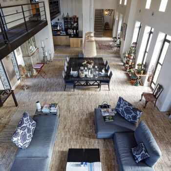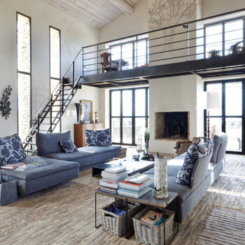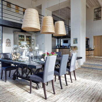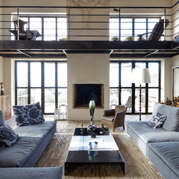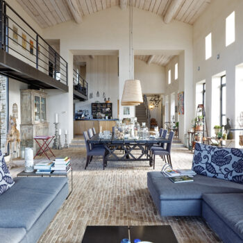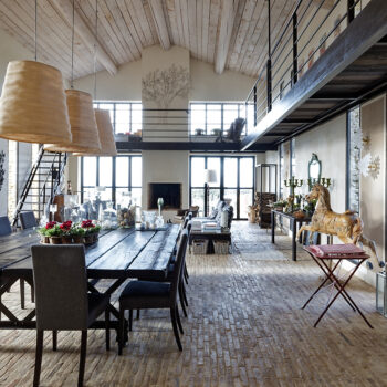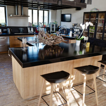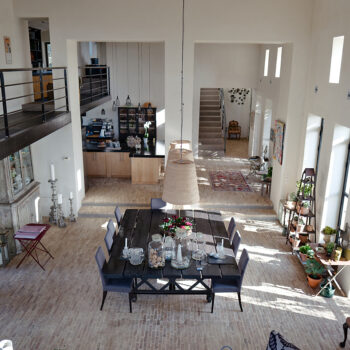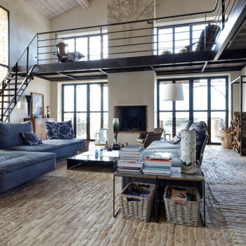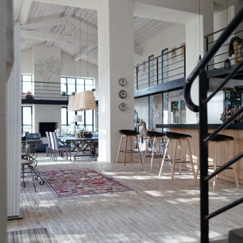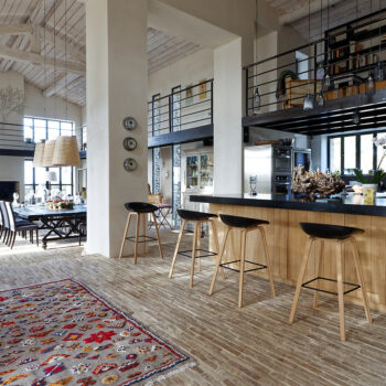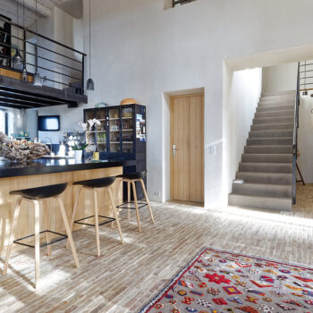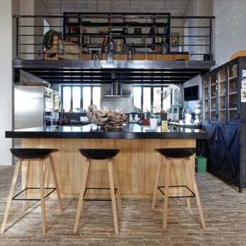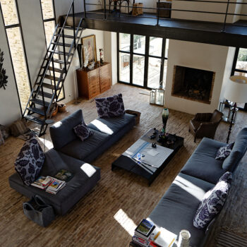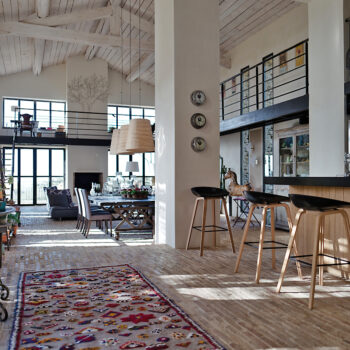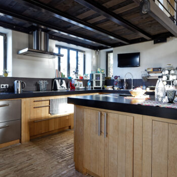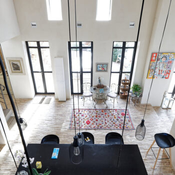 hauteur sous plafond, cheminée, cuisine ouverte, baie vitrée