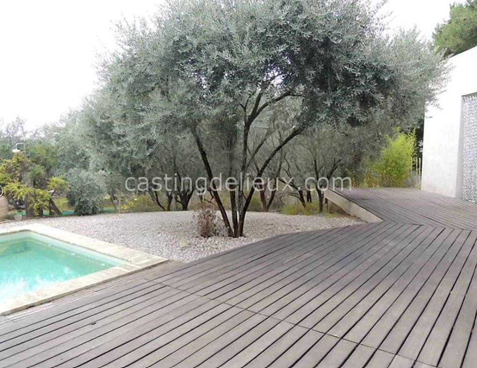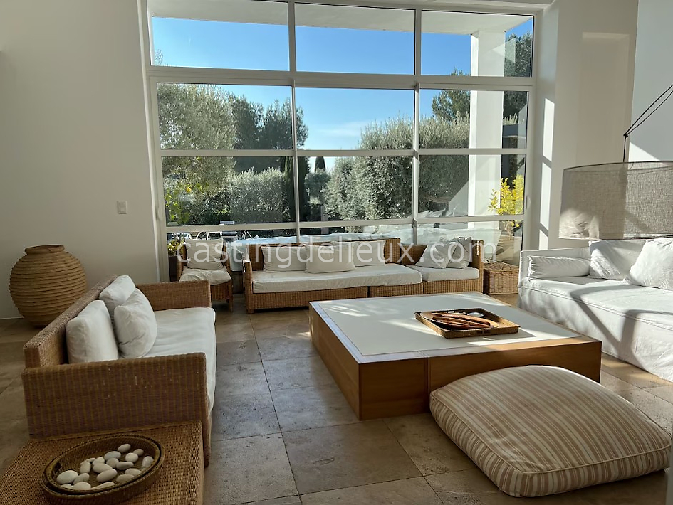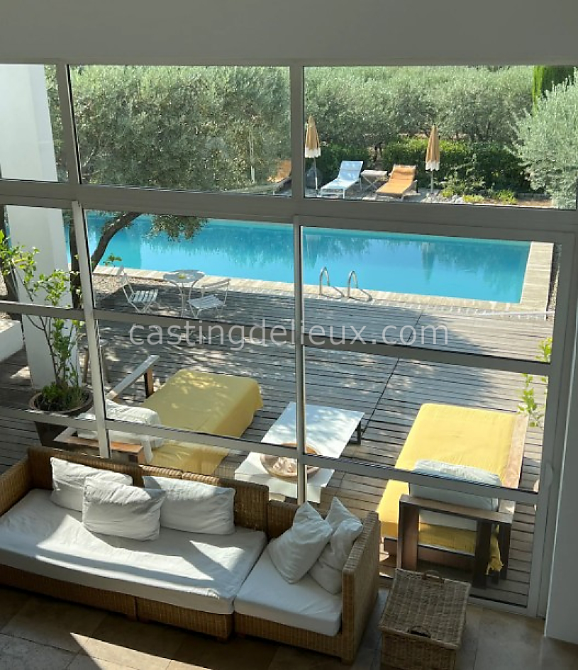 Villa contemporaine, implantée dans un environnement naturel arboré d’oliviers. Volumes épurés, grandes ouvertures, espaces lumineux et piscine extérieure. Lieu adapté aux shootings photo, tournages publicitaires et productions audiovisuelles.