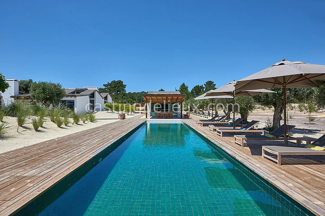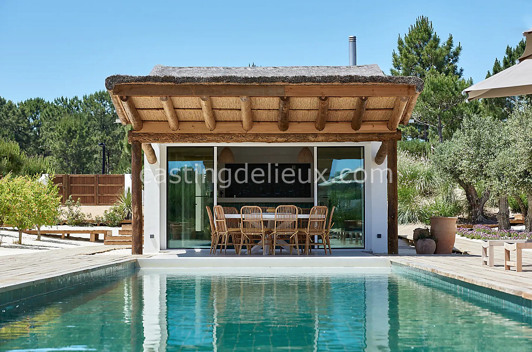Villa contemporaine nichée au cœur d’une réserve naturelle à Comporta, mêlant architecture signée et esprit cabane portugais. Jardin méditerranéen, piscine, installations sportives et vastes espaces lumineux composent un décor idéal pour shootings photo, tournages et projets créatifs haut de gamme.