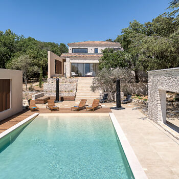 Villa d’architecte alliant ancien et très moderne, 4 suites avec SDB et WC, une dépendance pool house avec cuisine et SDB