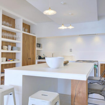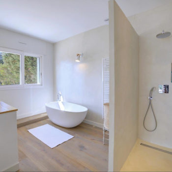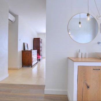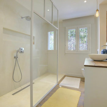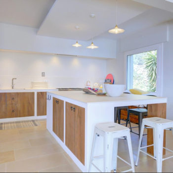 carrelage/tomettes, cuisine ouverte, baie vitrée